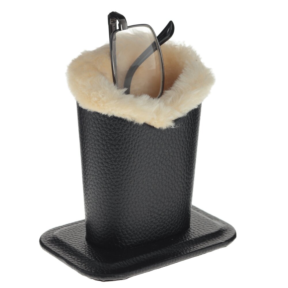 Подставка-футляр для очков. С ним вы всегда будете знать, где лежат ваши очки. Верхняя часть выполнена из эко-кожи, внутренняя - из искусственного меха, который обеспечивает защиту линз от любых повреждений и царапин. Данная конструкция очень удобна и экономит время на закрытие/открытие футляра. Стильное решение, которое не оставит вас и ваших гостей равнодушными.