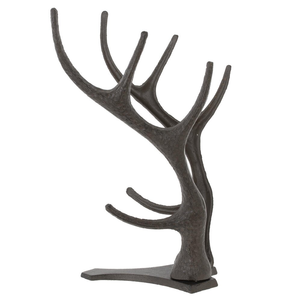 Элегантная подставка для 3?х бутылок, выполненная из прочного металла в виде изящных олених рогов. Оригинальная форма надежно фиксирует бутылки вина, шампанского или любого другого напитка, позволяя хранить их горизонтально и красиво демонстрировать на столе, барной стойке или в гостиной. Темное покрытие под старый металл подчеркивает благородный, слегка брутальный характер изделия и гармонично вписывается как в современный интерьер, так и в классический или охотничий стиль. Компактная устойчивая база обеспечивает надежную опору, не занимает много места и защищает поверхность от царапин. Идеальное решение для домашнего бара и эффектный подарок ценителям вина и нестандартного декора.