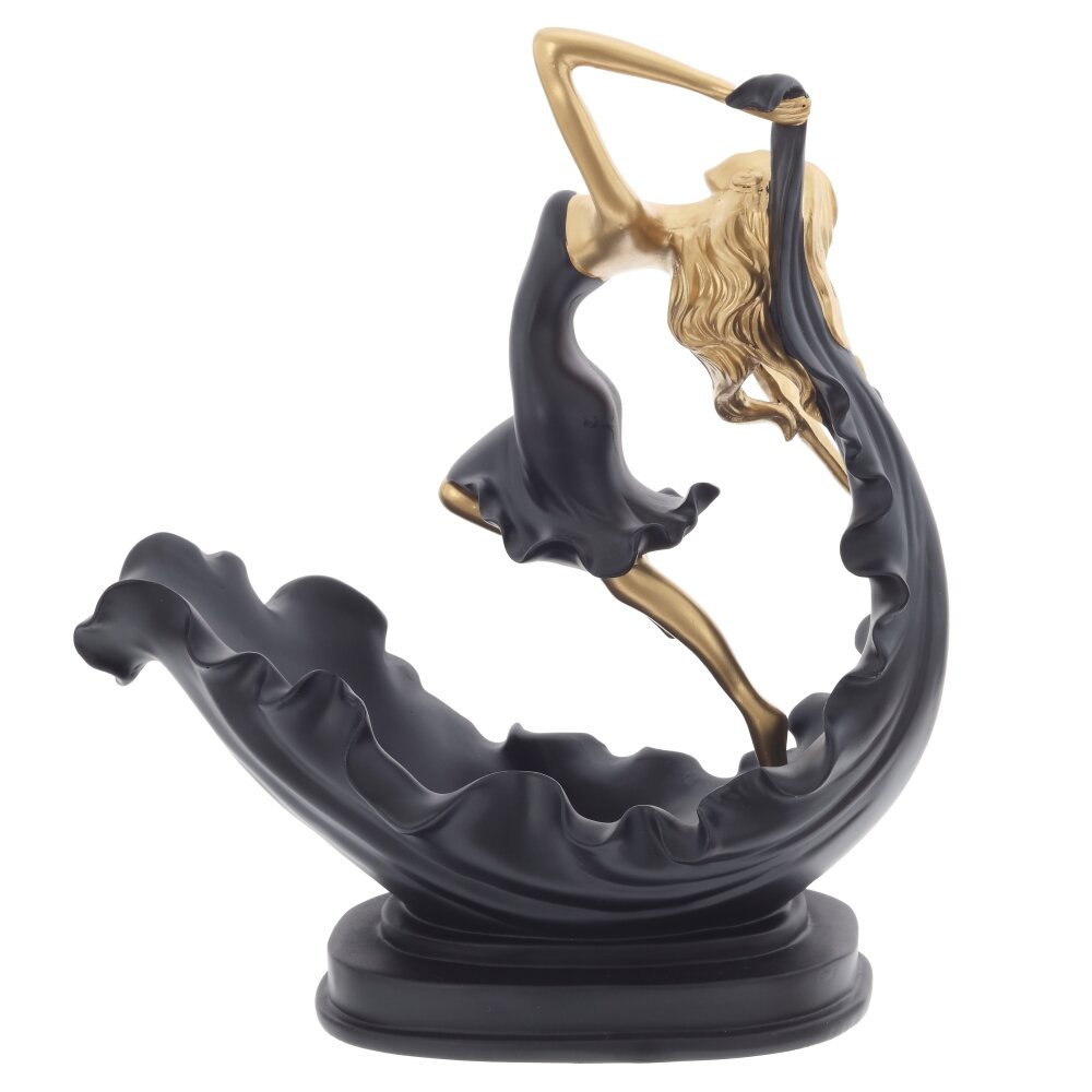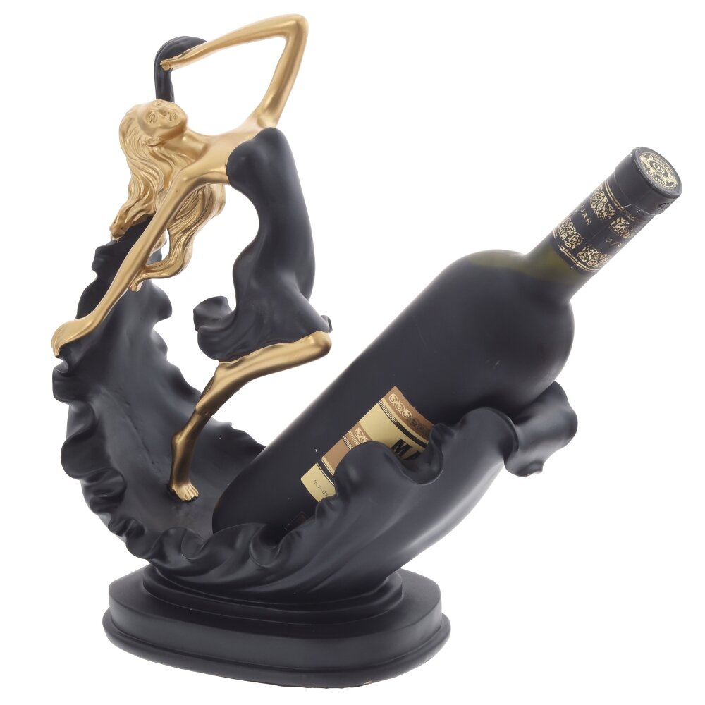 Элегантная подставка для бутылки «Девушка» станет выразительным акцентом любого интерьера и стильным оформлением праздничного стола. Фигура из полимерных материалов выполнена в виде изящной девушки в танце: золотистое тело и плавные линии платья гармонично сочетаются с матовым чёрным основанием, образуя устойчивую чашеобразную нишу для размещения бутылки вина, шампанского или напитков аналогичного формата. Подставка не только надёжно фиксирует бутылку, но и выполняет роль декоративной статуэтки. Идеальный подарок для ценителей оригинальных аксессуаров, подходит для дома, бара, кафе или в качестве эффектного корпоративного сувенира.