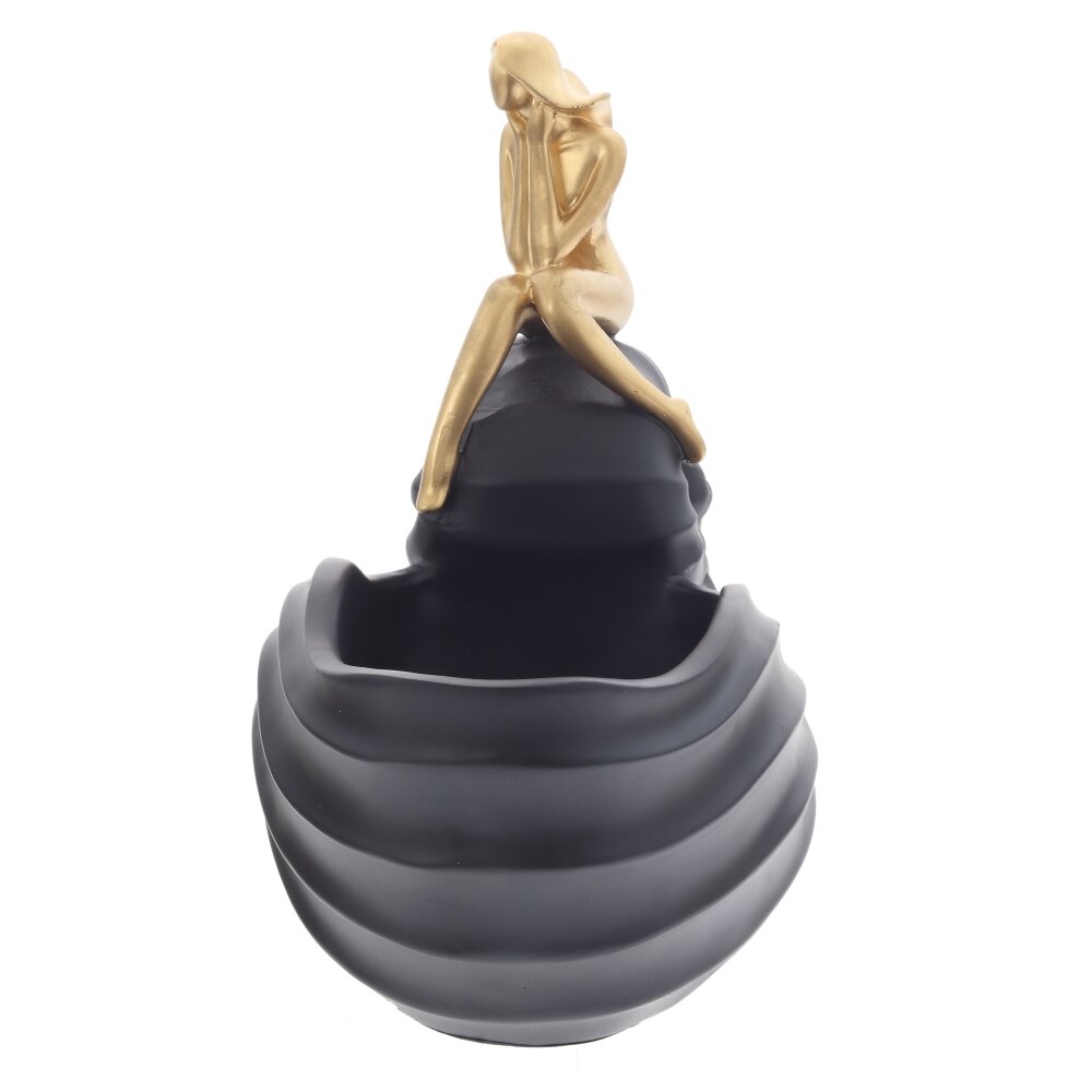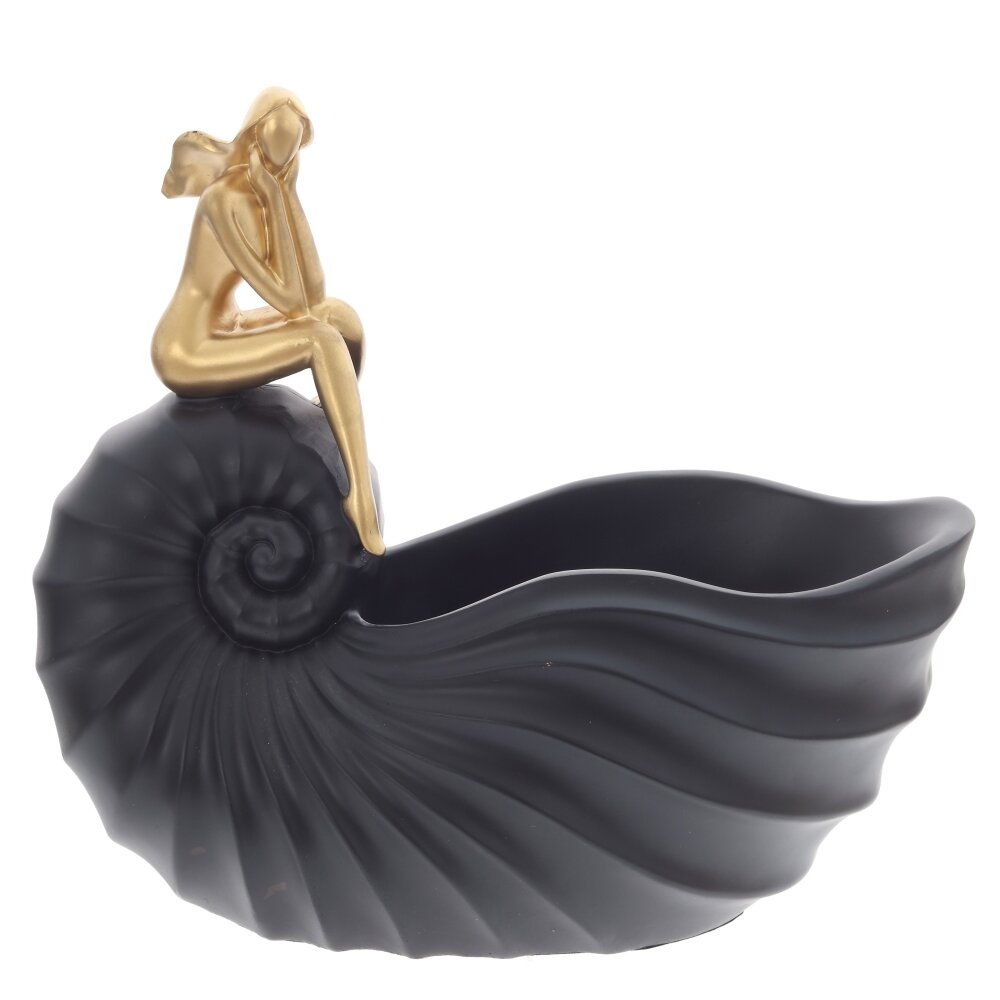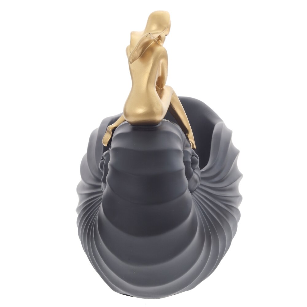 Элегантная подставка для бутылки «Девушка» станет ярким акцентом вашего стола или барной зоны. Изделие выполнено из прочных полимерных материалов в виде объемной раковины глубокого чёрного цвета, внутри которой размещается бутылка вина или другого напитка. На вершине раковины расположена изящная фигурка девушки в золотистом оттенке, создающая ощущение лёгкости и утончённости. Гладкая матовая поверхность легко очищается и устойчива к влаге, а продуманная форма обеспечивает надёжную фиксацию бутылки и предотвращает её скольжение. Подставка гармонично впишется в современный интерьер, подойдёт для сервировки праздничного стола, романтического ужина или станет оригинальным подарком ценителям необычных аксессуаров для дома.