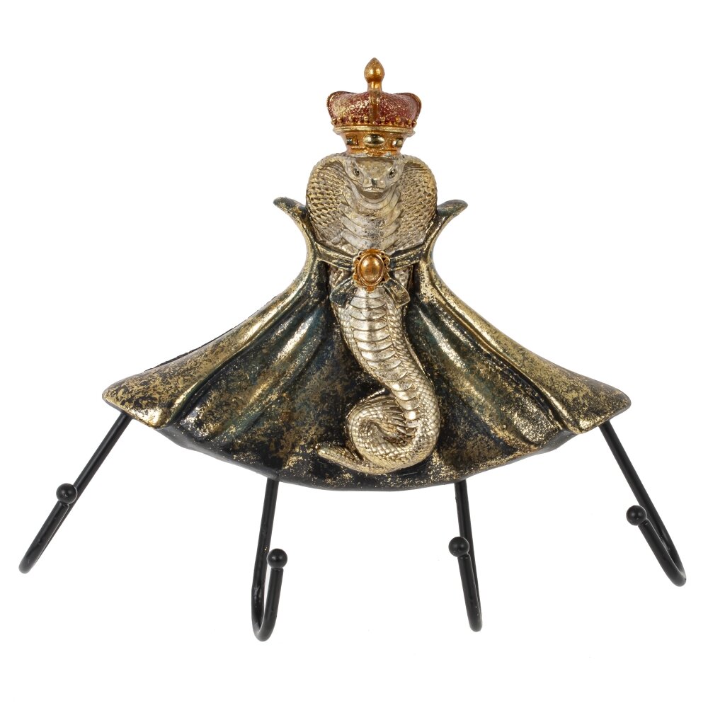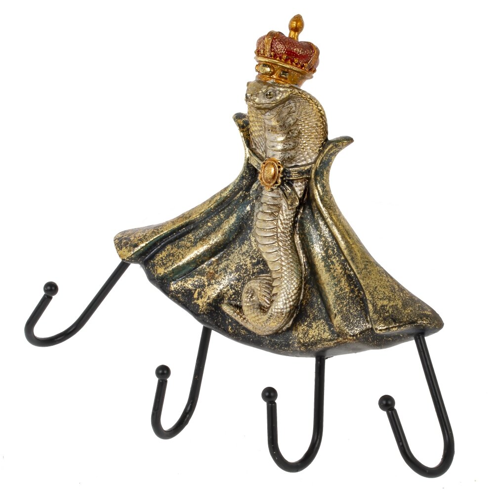 Вешалка на 4 крючка "Змея" – это гармоничное сочетание функциональности и эстетики. Центральное место занимает изящная статуэтка кобры в короне, которая придает вешалке уникальный декоративный вид. Четыре прочных крючка идеально подходят для одежды, аксессуаров, ключей или сумок, что делает вешалку не только стильным, но и практичным решением для вашего интерьера. Этот элемент станет ярким акцентом в прихожей или спальне, добавляя нотки роскоши и изысканности. Вешалка "Змея" преобразит пространство и станет оригинальным подарком в преддверии наступающего года Змеи.