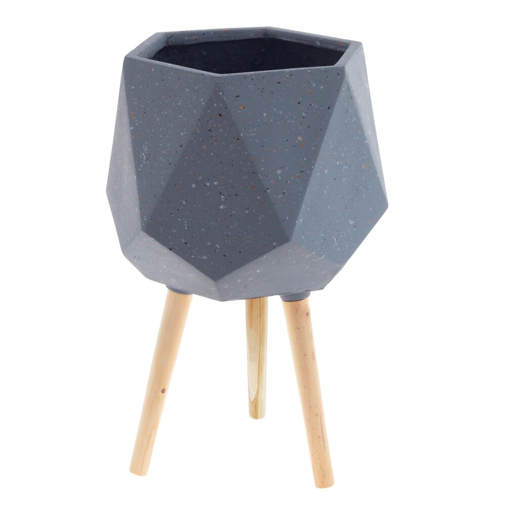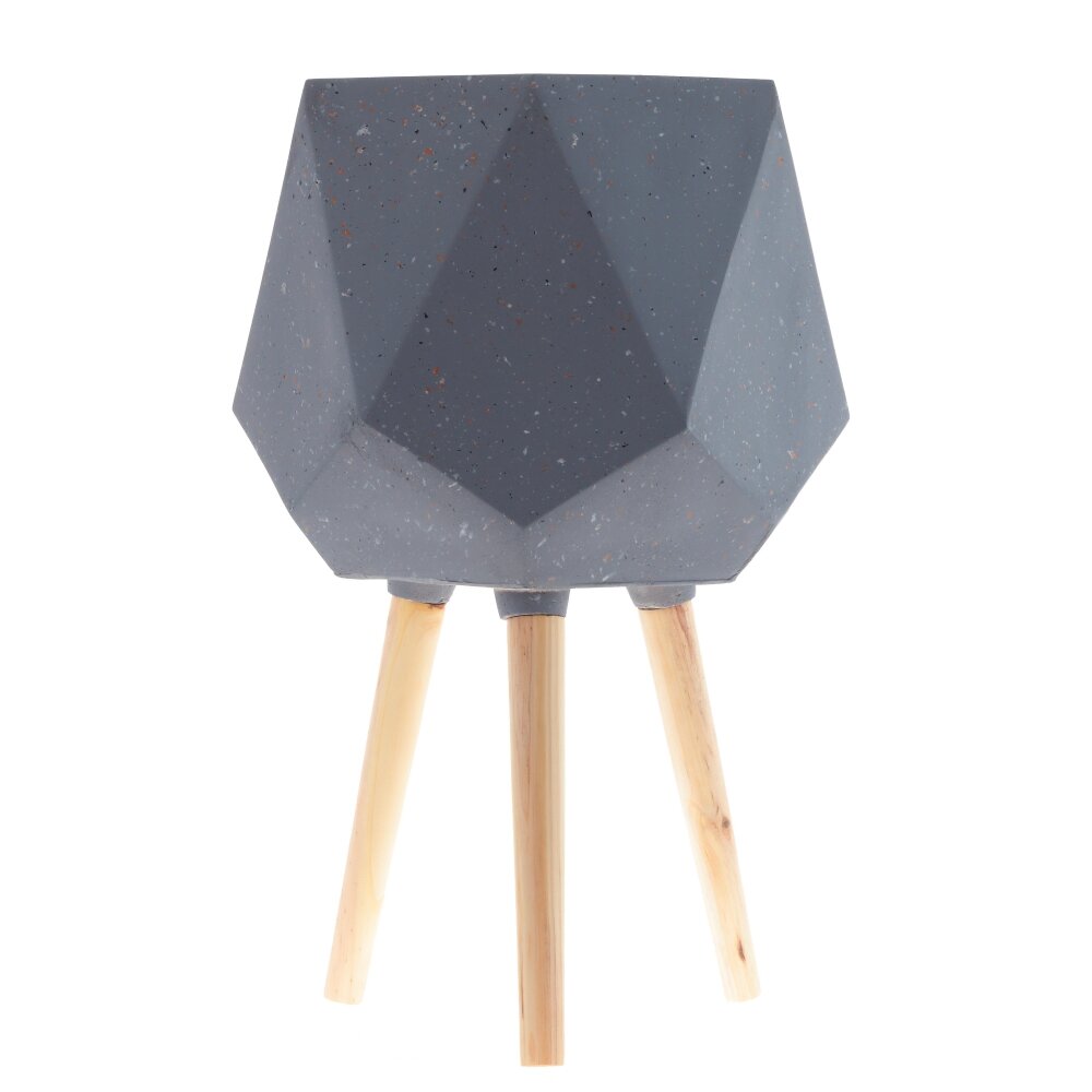 Кашпо из магнезии имеет вместительность 35 л. Оно установлено на трех прочных деревянных ножках, обеспечивающих стабильность и надежность. Кашпо выполнено в сером цвете, что придает ему элегантный и современный вид. Угловатая поверхность добавляет особый шарм и оригинальность этому предмету. Кашпо обладает прочностью и долговечностью. Оно идеально подходит для размещения растений или декоративных элементов в интерьере, создавая уютную и стильную атмосферу.
