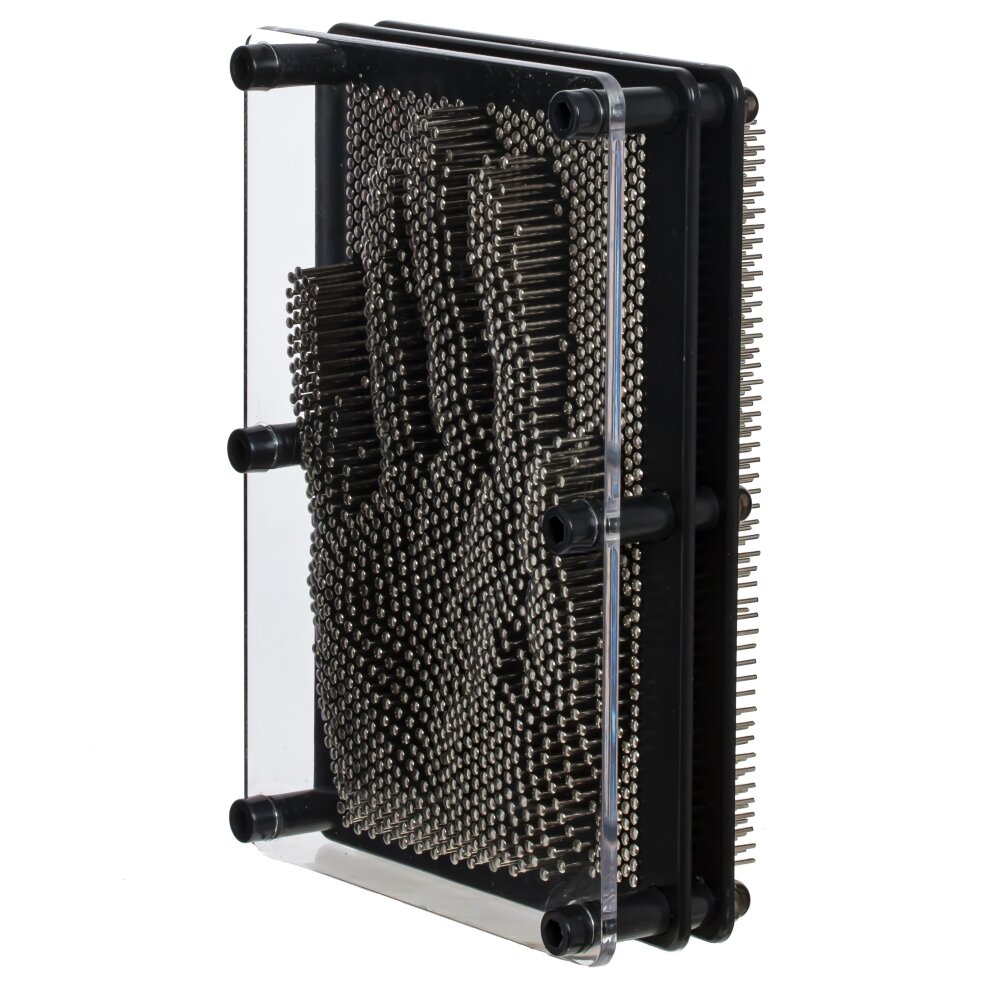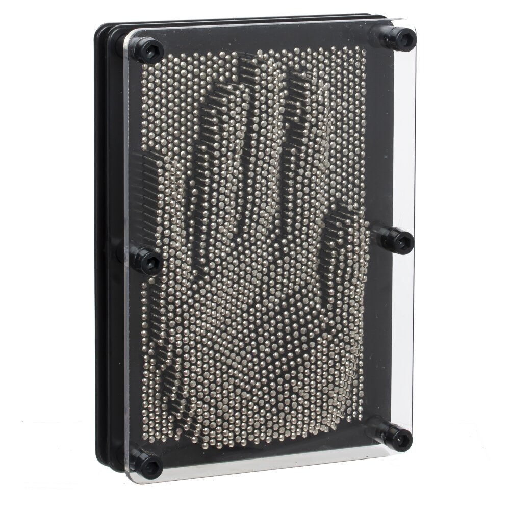 Экспрес-скульптор (Пин Арт) представляет собой черную прямоугольную основу с большим количеством гвоздиков. Для отображения нужного рисунка нужно всего лишь приложить предмет под поле. Через короткое время вы увидите объемный рисунок. Процесс рисования настолько особенный, что первые минуты создания картины могут показаться волшебством и магией.
