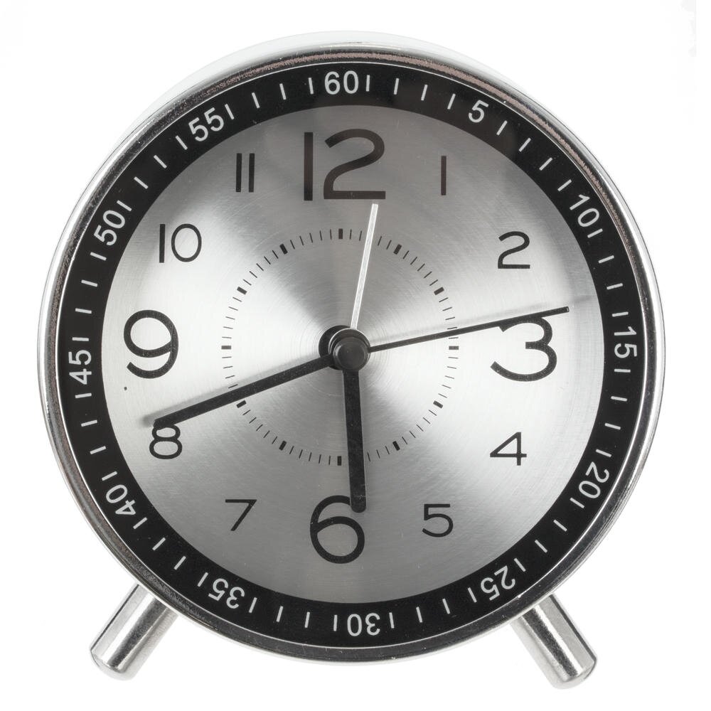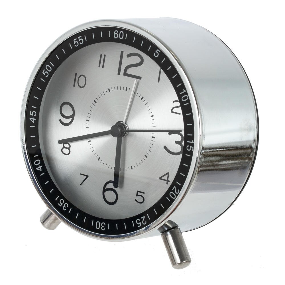 Стильный настольный будильник с лаконичным круглым корпусом станет ярким акцентом на прикроватной тумбе, рабочем столе или полке. Размер часов: длина 11 см, ширина 5 см, высота 12 см, диаметр циферблата 8,5 см, вес 237 гр. Корпус из прочного металла с хромированным покрытием гармонично сочетается с циферблатом под прозрачным стеклом. Крупные арабские цифры и контрастные стрелки обеспечивают хорошую читаемость времени даже издалека. Надёжные полимерные элементы защищают внутренний механизм и продлевают срок службы изделия. Будильник работает от двух батареек типа АА (в комплект не входят), не требует подключения к сети и удобен для использования дома, в офисе или в поездках. Компактный размер, устойчивые ножки и современный ретро-дизайн делают его практичным и стильным аксессуаром для любого интерьера. Компактные размеры позволяют разместить будильник на тумбочке, столе или полке, не занимая много места. Эти часы станут отличным подарком для близких и друзей, а также прекрасным украшением для собственного дома или офиса. Они подчеркнут индивидуальность и хороший вкус своего владельца.