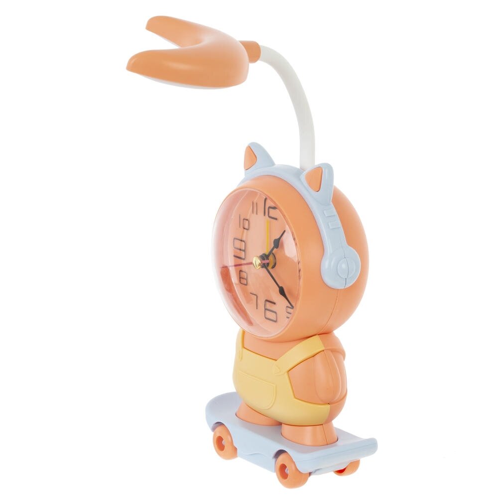 Снизу на скейте размещена точилка для карандашей, что добавляет функциональности детскому будильнику.