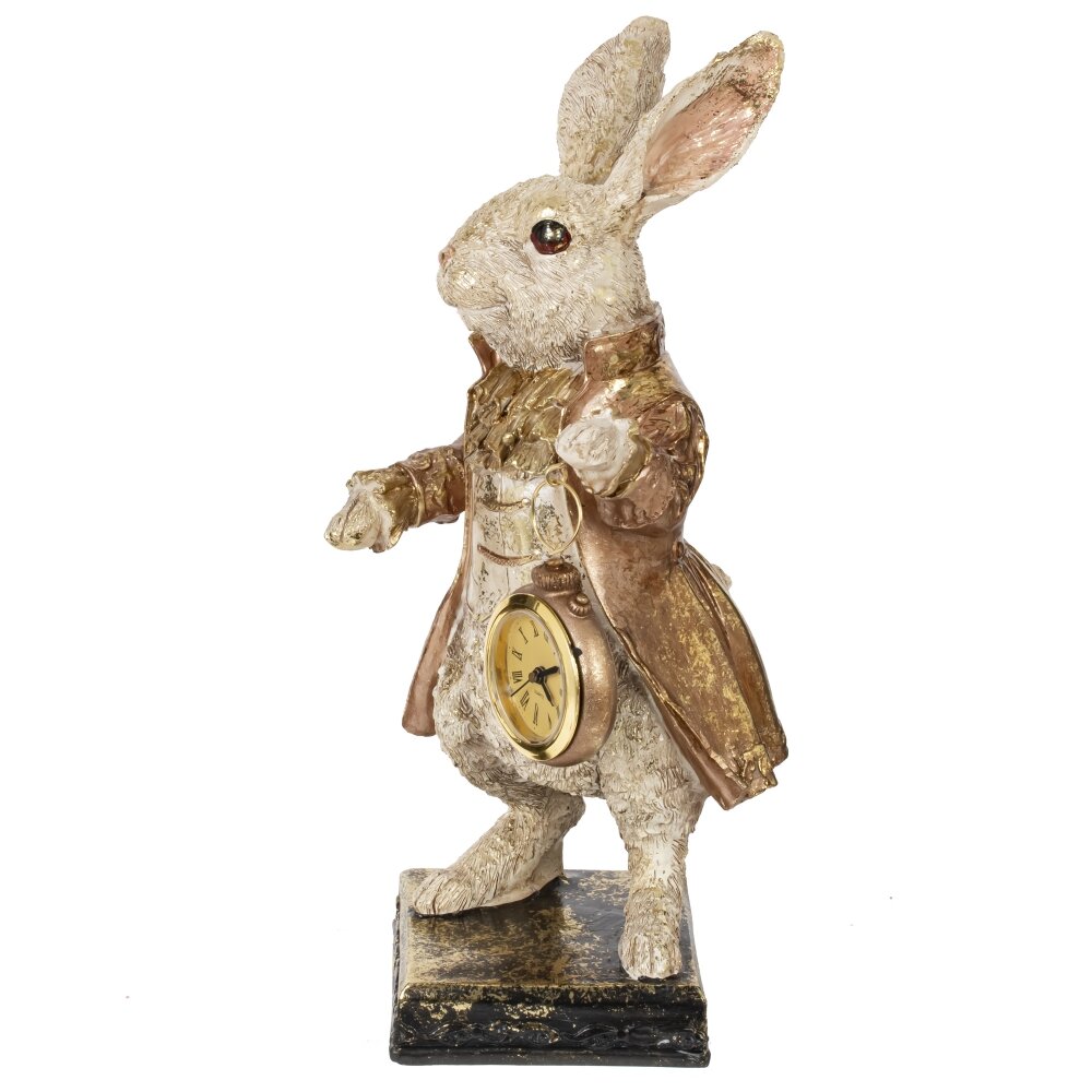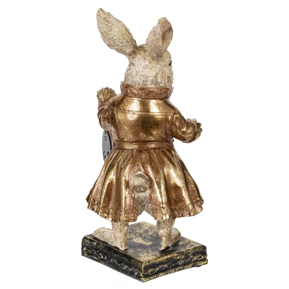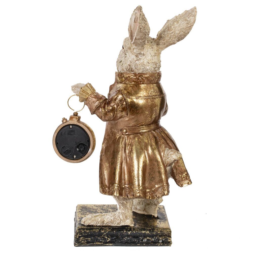 Этот очаровательный заяц, одетый в роскошный коричневый сюртук, - это не просто статуэтка, это настоящее произведение декоративного искусства. Статуэтка зайца с часами имеет следующие размеры: высота - 30 см, длина - 17 см, ширина - 15 см (вместе с подставкой). Благодаря таким размерам, она будет идеально смотреться на полке, на камине или на столе в гостиной. Он словно оживает, приглашая вас окунуться в волшебный мир сказки. Сделанный из высококачественного полистоуна, он излучает элегантность и шарм. Бежевый цвет его шерсти и золотистое напыление придают зайцу исключительный шик. В комплекте с зайцем идет миниатюрная часовая система, которая превращает его в стильное и практичное украшение для вашего дома. Часы имеют плавный ход и оснащены черными стрелками: часовой, минутной и секундной. Циферблат украшен римскими цифрами и имеет два концентрических круга - большой диаметр составляет 5.5 см, а маленький - 3.5 см. Часы работают от одной батарейки типа LR44 (батарейка в комплект не входит).В целом, статуэтка зайца с часами - это необычный и стильный декор для любого дома. Она будет отлично дополнять любой интерьер, привнося в него нотку сказочности и элегантности. Это идеальный подарок для себя или близких, кто ценит красоту и оригинальность.