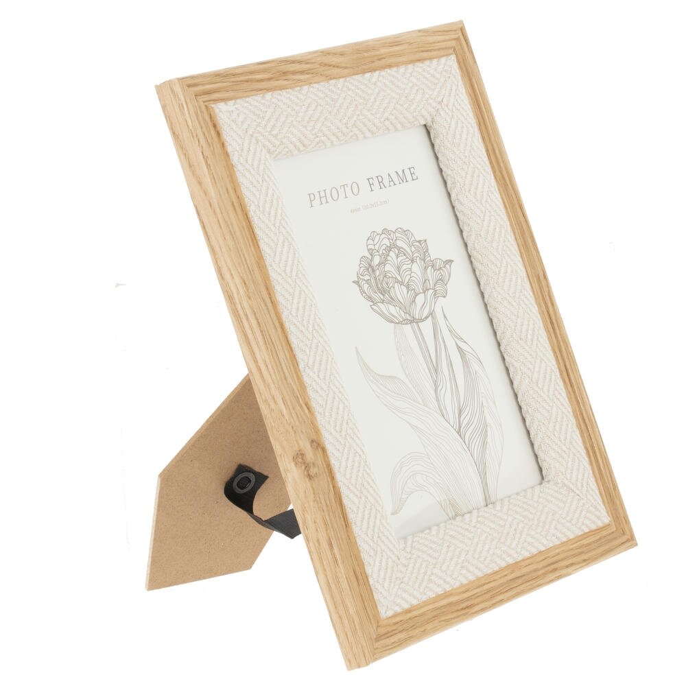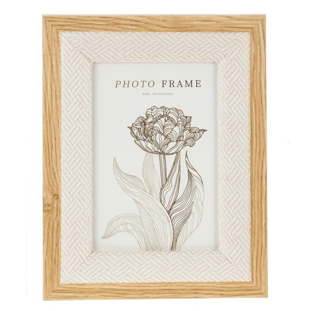 Элегантная фоторамка формата 10?15 см — стильное решение для оформления любимых фотографий. Основа выполнена из натурального дерева с тёплой текстурой, что придаёт изделию уют и респектабельность. Внутренняя часть украшена текстильным узором в светлых тонах, создающим нежный контраст с деревянной окантовкой. Центральный элемент дизайна — изысканный контурный рисунок цветка, который служит прекрасным фоном для размещения фото. Прочное стекло надёжно защищает изображение от пыли и повреждений, а металлические крепления обеспечивают долговечность конструкции. Задняя часть рамки изготовлена из качественного картона, что делает изделие лёгким, но устойчивым. Превратите дорогие сердцу моменты в часть домашнего декора с этой изысканной фоторамкой!