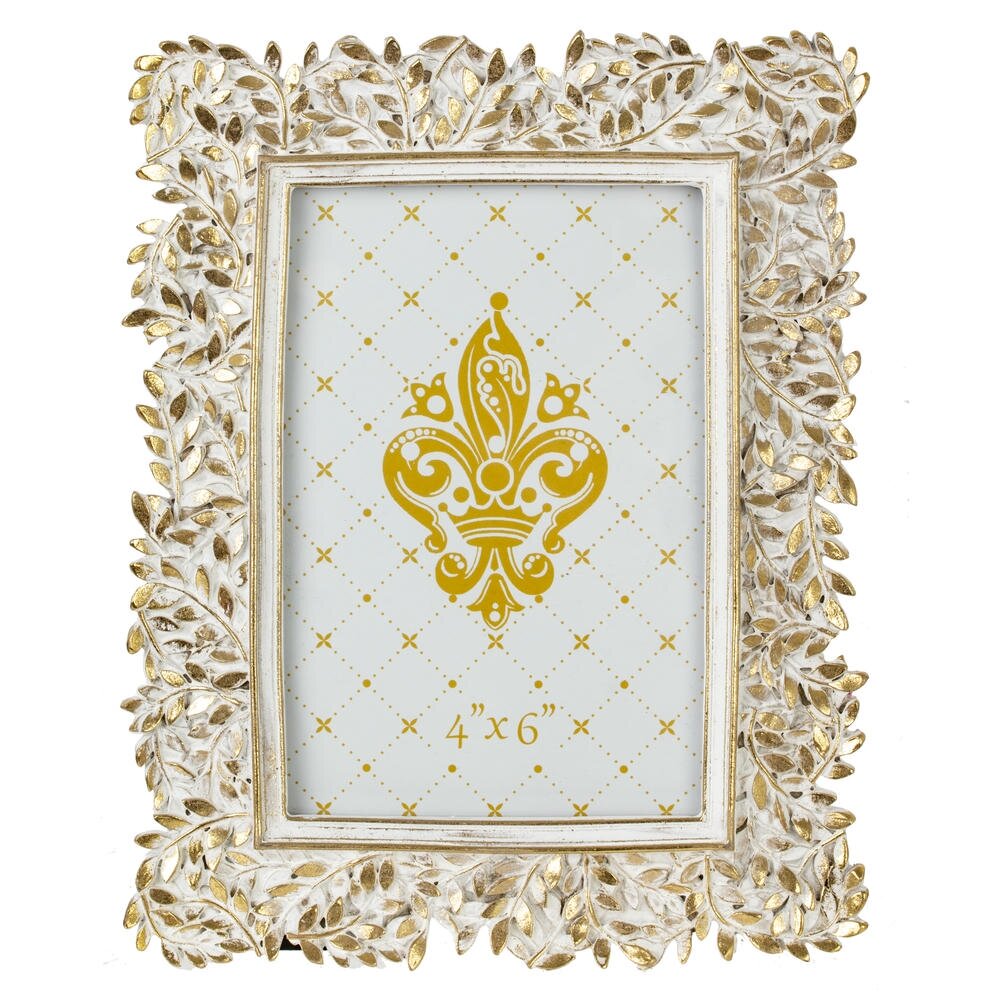 Элегантная фоторамка для фото 10?15 см станет эффектным акцентом в интерьере. Оригинальное обрамление выполнено из прочных полимерных материалов в виде ажурного растительного орнамента с сочетанием белого и золотистого оттенков, что придаёт изделию винтажный и нарядный вид. Лицевая часть защищена прозрачным стеклом, которое надежно сохраняет фотографию от пыли и повреждений. Рамка идеально подойдёт для семейных снимков, портретов и станет прекрасным подарком к любому торжеству.