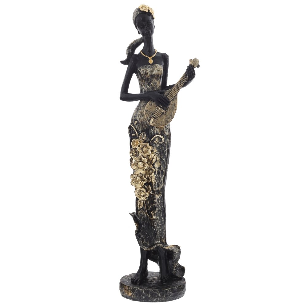 Декоративная фигурка «Африканка» — изящный акцент для современного интерьера. Стройная девушка в длинном платье играет на струнном инструменте, создавая ощущение спокойствия и гармонии. Платье украшено рельефным цветочным узором с благородным золотистым оттенком, который красиво контрастирует с темным тоном фигуры. Тонкие детали – украшения, повязка на голове, фактура ткани – аккуратно проработаны и делают статуэтку выразительной и запоминающейся. Изделие выполнено из прочных полимерных материалов, устойчивых к выцветанию и уходу, поэтому фигурка надолго сохранит свой первоначальный вид. Идеально подходит для гостиной, спальни или кабинета, а также станет оригинальным подарком ценителям этнического стиля.