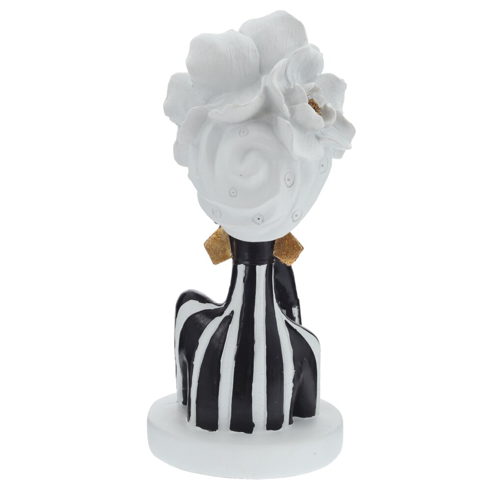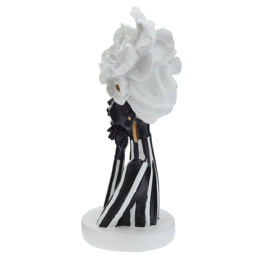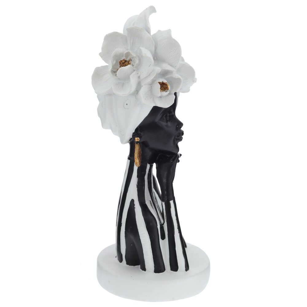 Декоративная фигурка «Африканка» — изящный акцент для современного интерьера. Бюст женщины выполнен из прочных полимерных материалов с плавной, тщательно прорисованной линией силуэта. Контраст черного корпуса и белых вертикальных полос подчеркивает утонченность образа, а крупный цветочный головной убор придаёт композиции выразительность и артистизм. Золотистые серьги добавляют теплый блеск и делают статуэтку заметным акцентом на полке, каминной полке или тумбе. Легкая, устойчивая и неприхотливая в уходе, эта фигурка станет стильным подарком и эффектным украшением гостиной, спальни или студии в этническом, минималистичном или арт-деко стиле.
