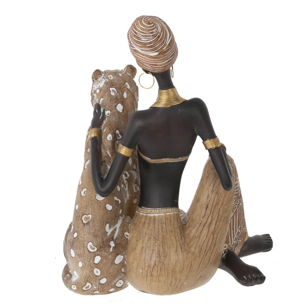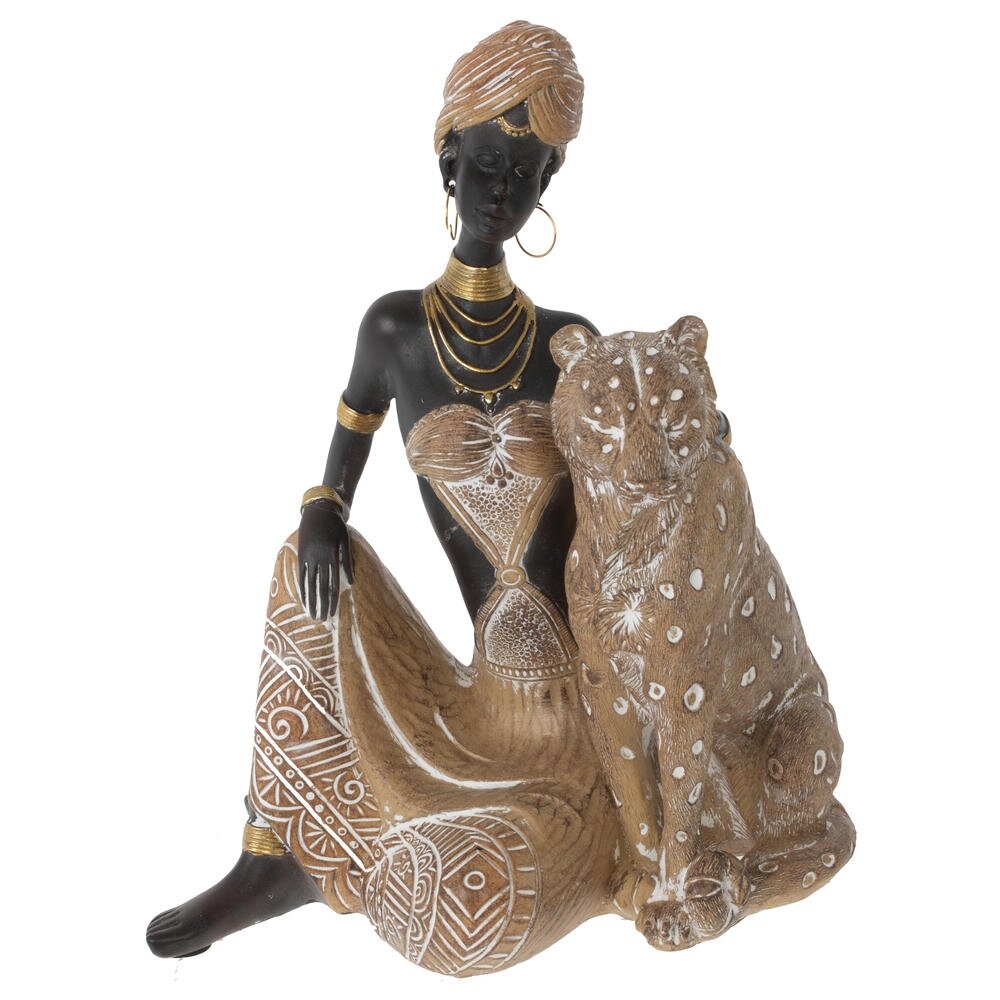 Декоративная фигурка «Африканка» – изысканный акцент для интерьера в этническом, современном или классическом стиле. Изделие выполнено из прочных полимерных материалов и изображает стройную африканскую женщину в эффектном наряде с национальными орнаментами и украшениями золотистого цвета. Рядом с ней расположилась грациозная дикая кошка, подчёркивающая атмосферу таинственного африканского саванны. Тщательно проработанные детали, плавные линии и благородная цветовая гамма делают статуэтку выразительным украшением гостиной, спальни или кабинета. Такая фигурка станет оригинальным подарком ценителям необычного декора и путешествий, а также стильным элементом коллекции статуэток.