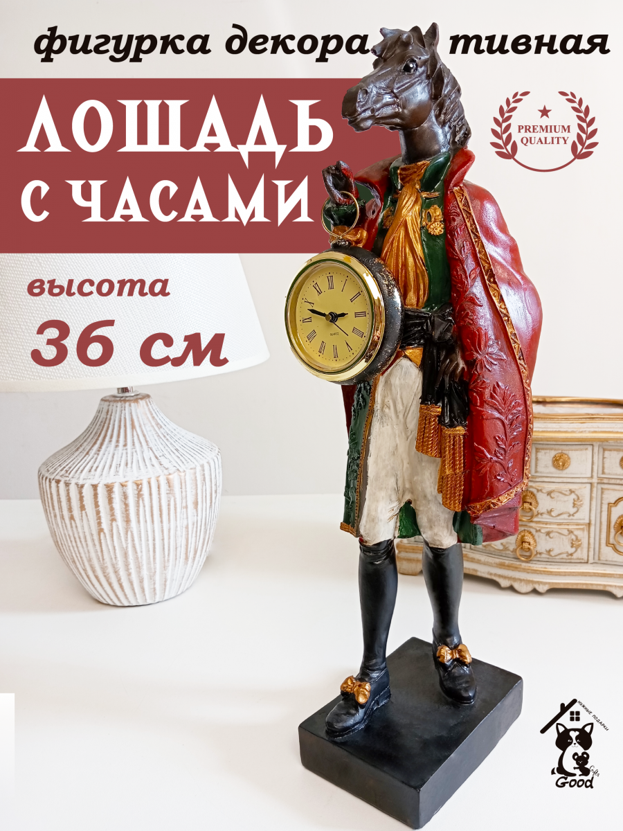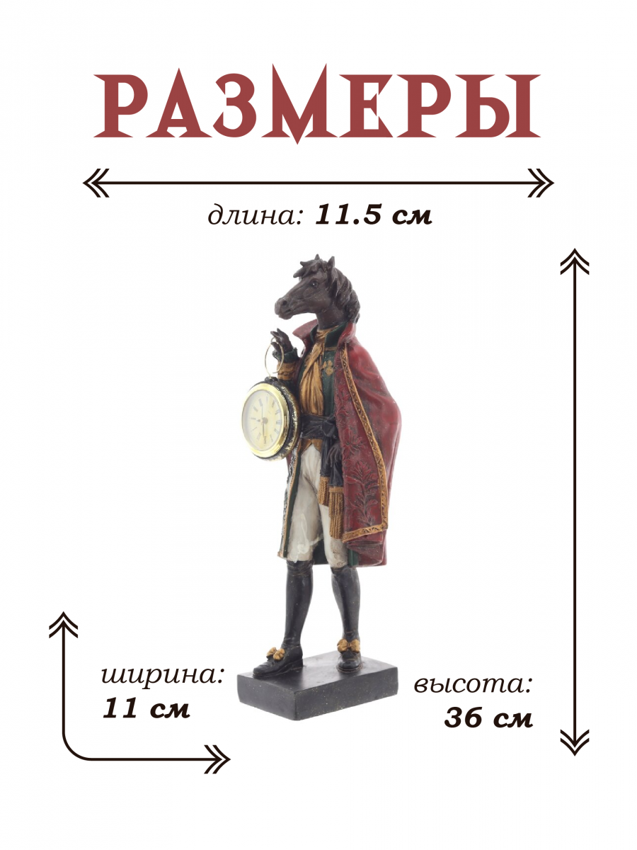 Декоративная фигурка "Лошадь" с часами — стильный и символичный элемент декора, который станет прекрасным подарком к Новому году или талисманом на удачу. Выполненная из прочного полимерного материала, фигурка символизирует энергию, силу и процветание. Лошадь традиционно ассоциируется с удачей и успехом в делах. Идеально подойдёт для оформления интерьера дома или офиса, а также станет оригинальным дополнением к новогодней композиции. Этот стильный сувенир будет радовать вас и ваших близких.