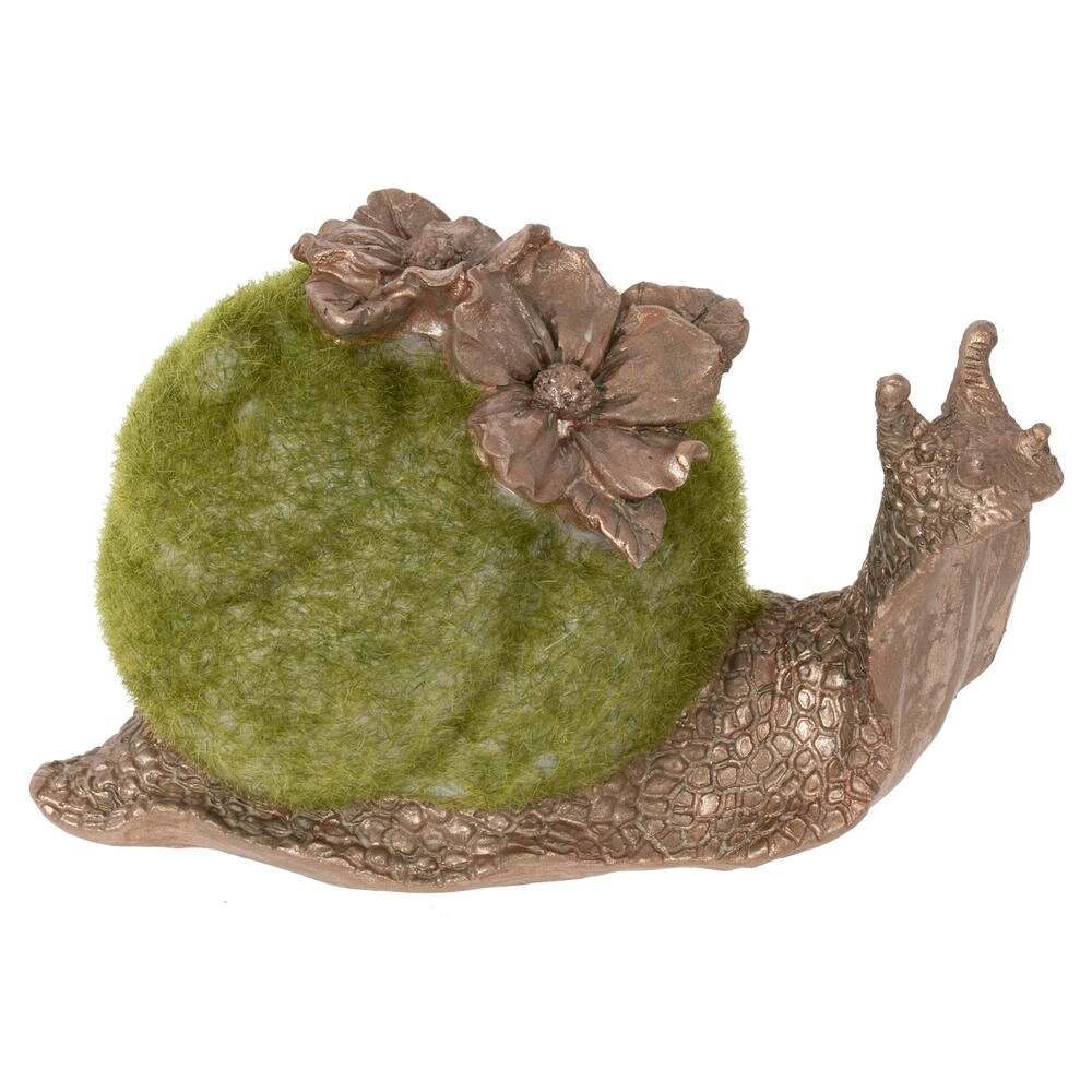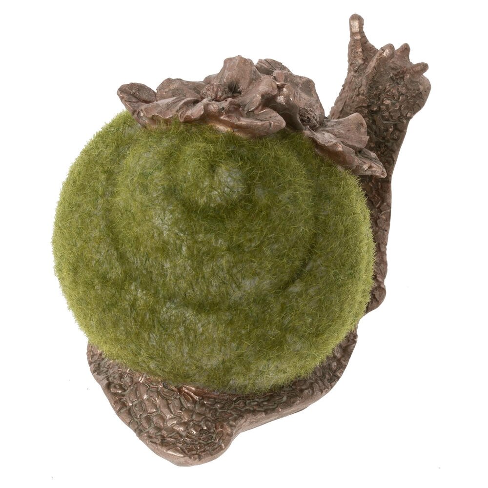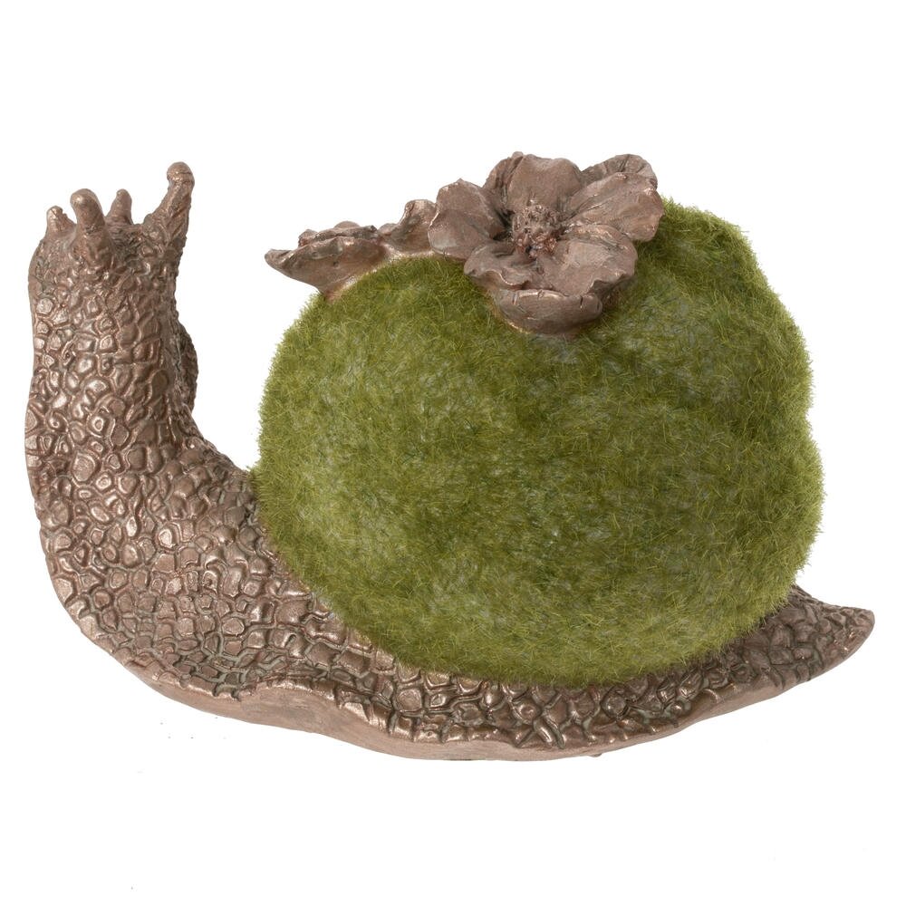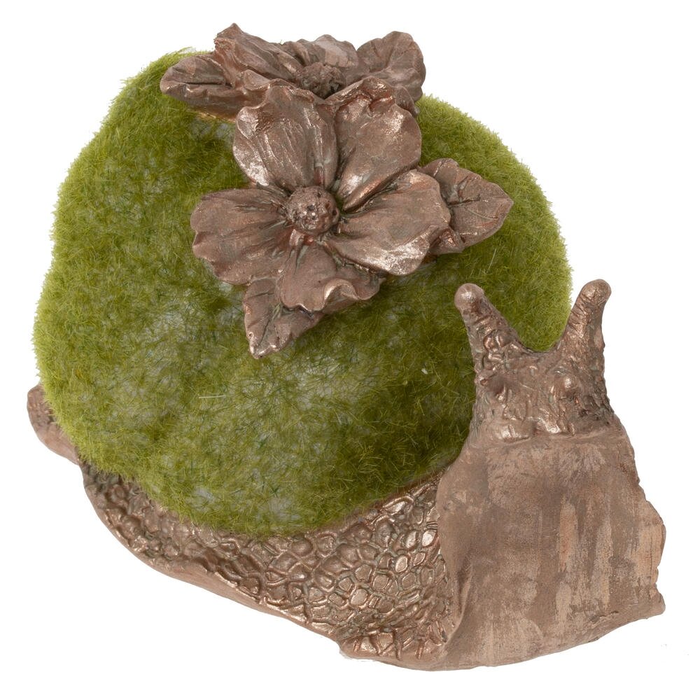 Декоративная фигурка в виде улитки это оригинальный акцент для дачи или сада, а так же изящный акцент для вашего дома. Размер интерьерной фигурки: высота 8 см, длина 13 см, ширина 8 см. Фигурка изготовлена из прочных полимерных материалов и устойчива к выцветанию. Основание выполнено с детальной фактурой панциря и тела, а «раковина» покрыта мягким зелёным ворсом, создающим эффект мха. Верх украшен объемными цветами в тон телу в золотисто-коричневый цвет, что придаёт изделию особый шарм. Фигурка станет выразительным элементом флористической композиции, камина, подоконника или полки, подчеркнёт природный стиль интерьера и создаст атмосферу уюта. Интерьерная фигурка это отличный вариант подарка любителям оригинального декора на день рождение, 8 марта или майские праздники. Натуральные оттенки, тщательно проработанные детали фактуры и плавные линии делают изделие выразительным и заметным.
