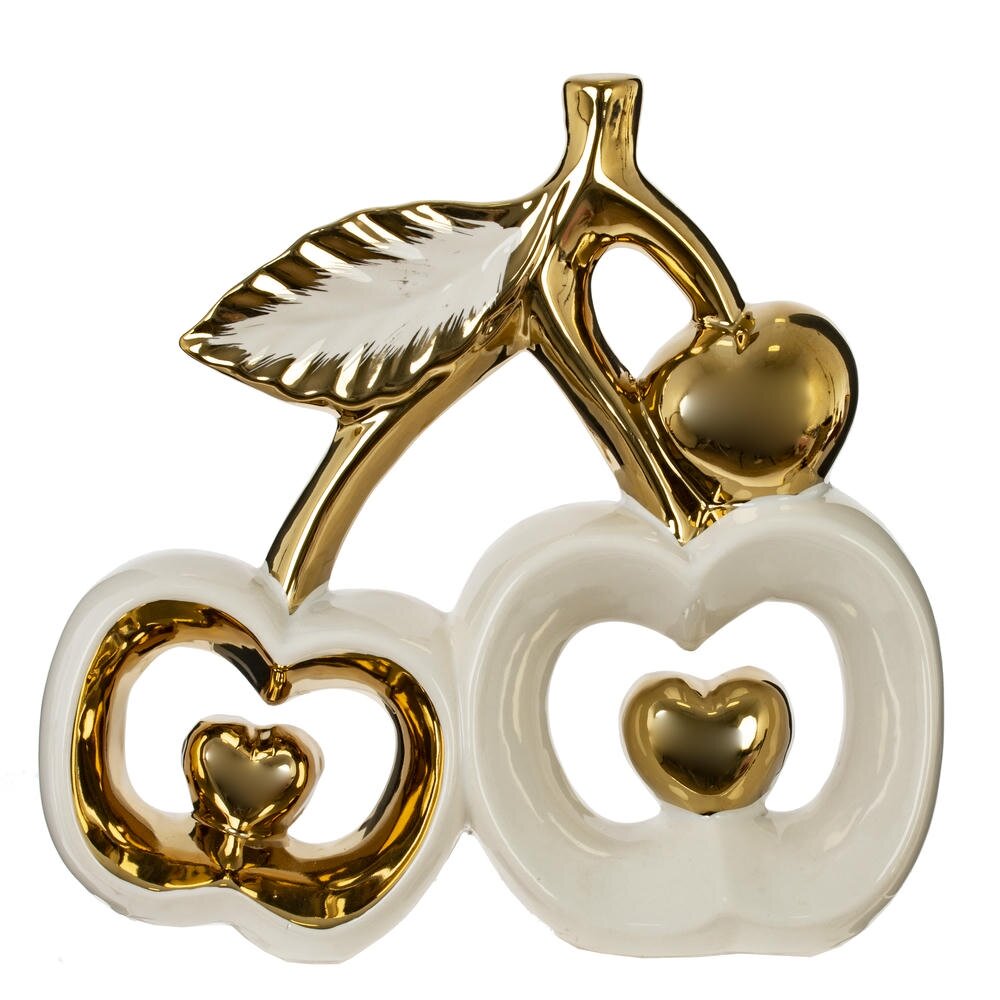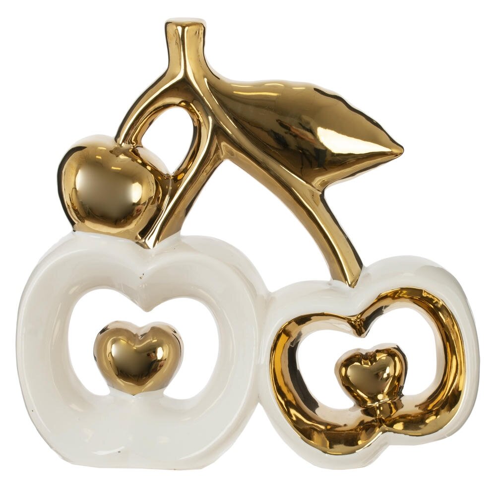 Белоснежная основа вишен подчёркивает блеск золотых элементов — черенка, листика и сердечек внутри плодов.Сердечки в центре: маленькие золотые сердца внутри каждой вишни превращают фигурку в символ любви и привязанности.Детализация листика прожилки на золотом листке добавляют реалистичности и художественной ценности.Плавные линии: округлые формы вишен и изогнутый черенок создают ощущение лёгкости и изящества.