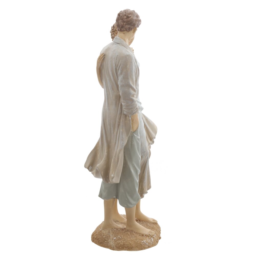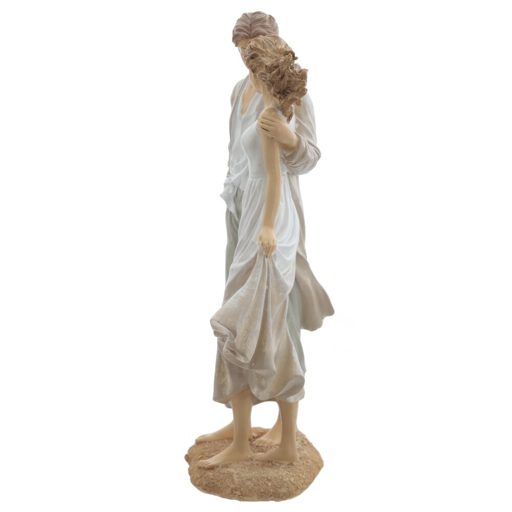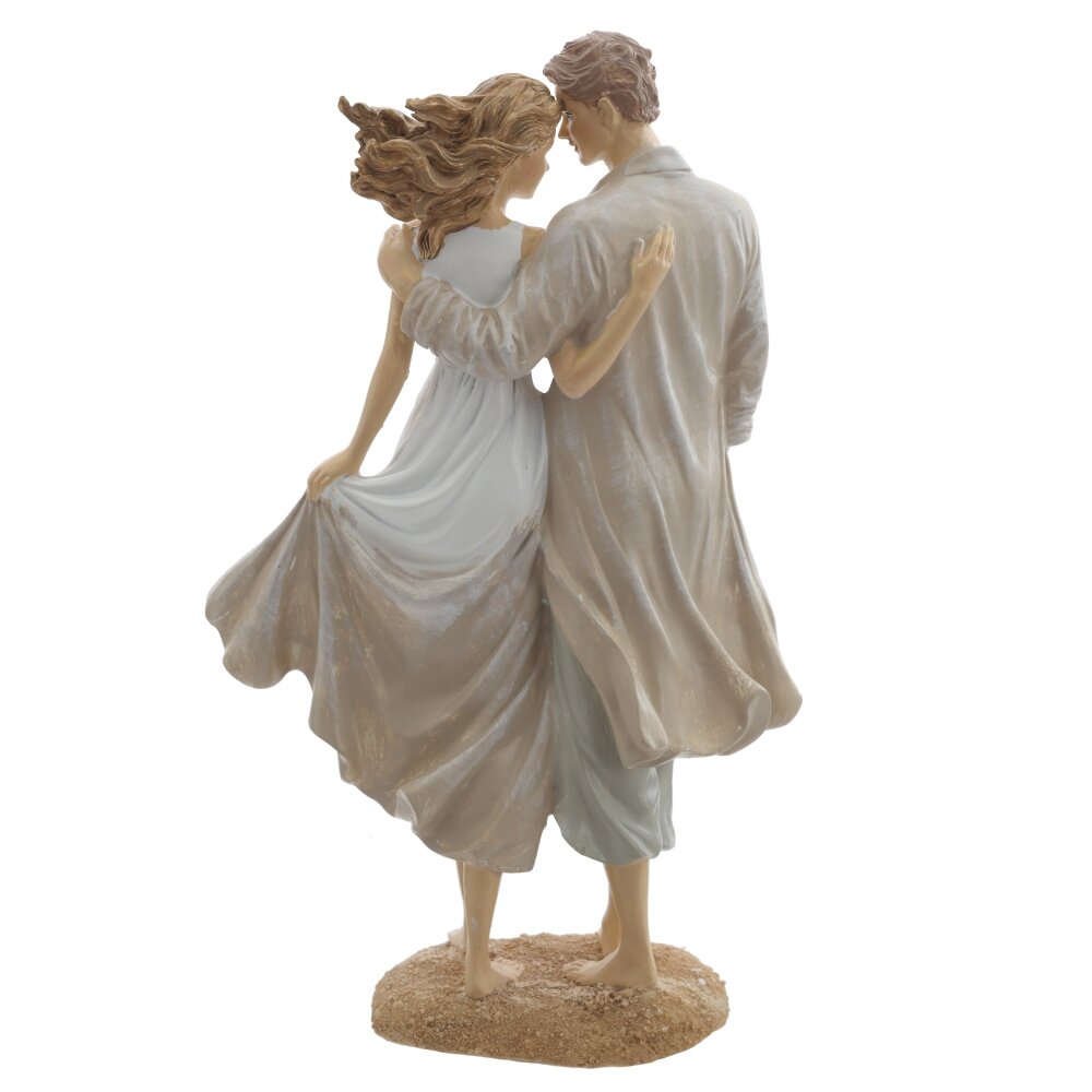 Декоративная фигурка, выполненная в виде романтичной пары, идущей босиком по песку. Размер интерьерной статуэтки: высота 25 см, длина 14,5 см, ширина 8 см, изготовлена из качественных полимерных материалов. Мужчина в легких брюках и свободном плаще бережно обнимает девушку в струящемся белом платье. Развевающиеся складки ткани и естественные позы создают ощущение движения и морского бриза. Нежная пастельная расцветка позволяет фигурке гармонично вписаться в любой интерьер — спальню, гостиную или зону отдыха. Отлично подходит как символичная идея для подарка на свадьбу, годовщину или День всех влюбленных, подчеркивая тепло, нежность и единство любящих сердец. Такая фигурка не только украшает пространство, но и дарит ощущение уюта, тепла и единства семьи. Статуэтка это небольшой, но значимый знак внимания близким на день рождения, новый год или 8 марта и 23 февраля. Украсьте свой дом стильным интерьерным украшением, добавив в дом атмосферу любви и согласия.