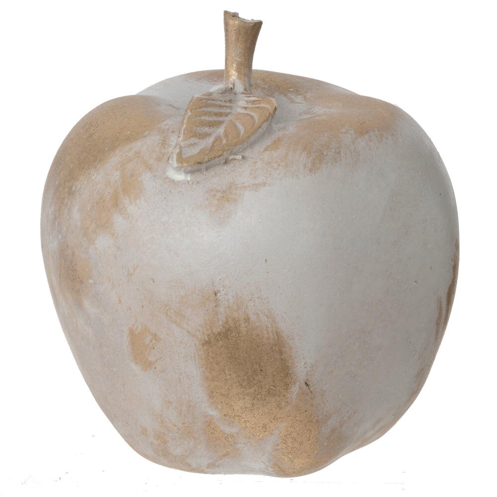 Элегантная декоративная фигурка в форме яблока, выполненная из керамики в природных бежево-песочных тонах. Изделие имеет матовую фактурную поверхность с эффектом состаривания и легкими потертостями, что придает ему винтажный шарм. Характерная деталь — рельефный листик у основания стебля и естественные цветовые переходы создают реалистичный вид. Фигурка станет изысканным акцентом в интерьере кухни, столовой или гостиной, идеально впишется в стили прованс, эко или скандинавский минимализм.