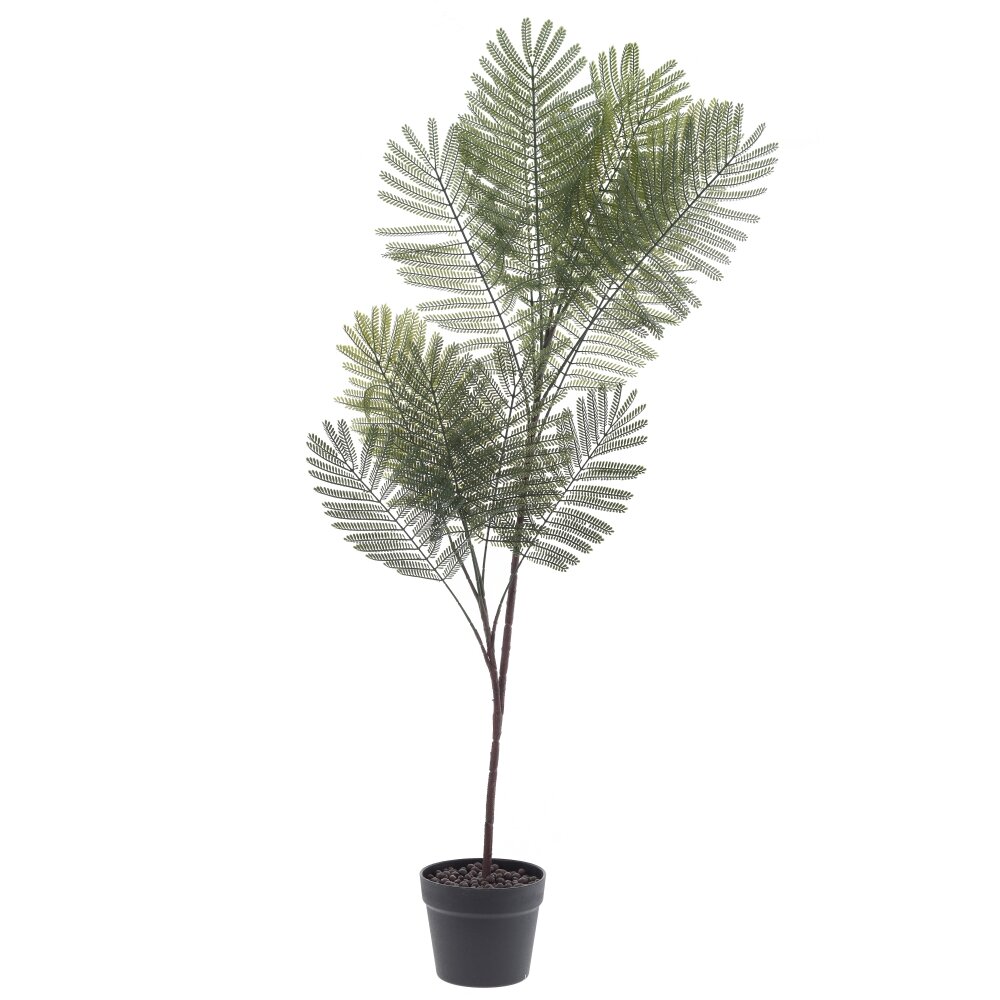 Искусственная композиция «Пальма» — элегантное декоративное растение в компактном матовом черном кашпо. Тонкий ствол разветвляется на несколько упругих побегов с ажурными перистыми листочками разной величины, оттенки зелени плавно переходят от нежно-оливкового к более насыщенному. Точная фактура и естественный изгиб создают впечатление живой тропической листвы. Основание оформлено декоративными камешками для устойчивости и аккуратного вида. Композиция не требует полива и особого ухода, сохраняет форму, легко переносит перестановки. Подходит для дома, офиса, кафе, фотозон и витрин: внесет свежесть в гостиную, спальню или зону ресепшн, гармонично впишется в современный, сканди или минималистичный интерьер. Ветви можно расправить, регулируя пышность кроны.