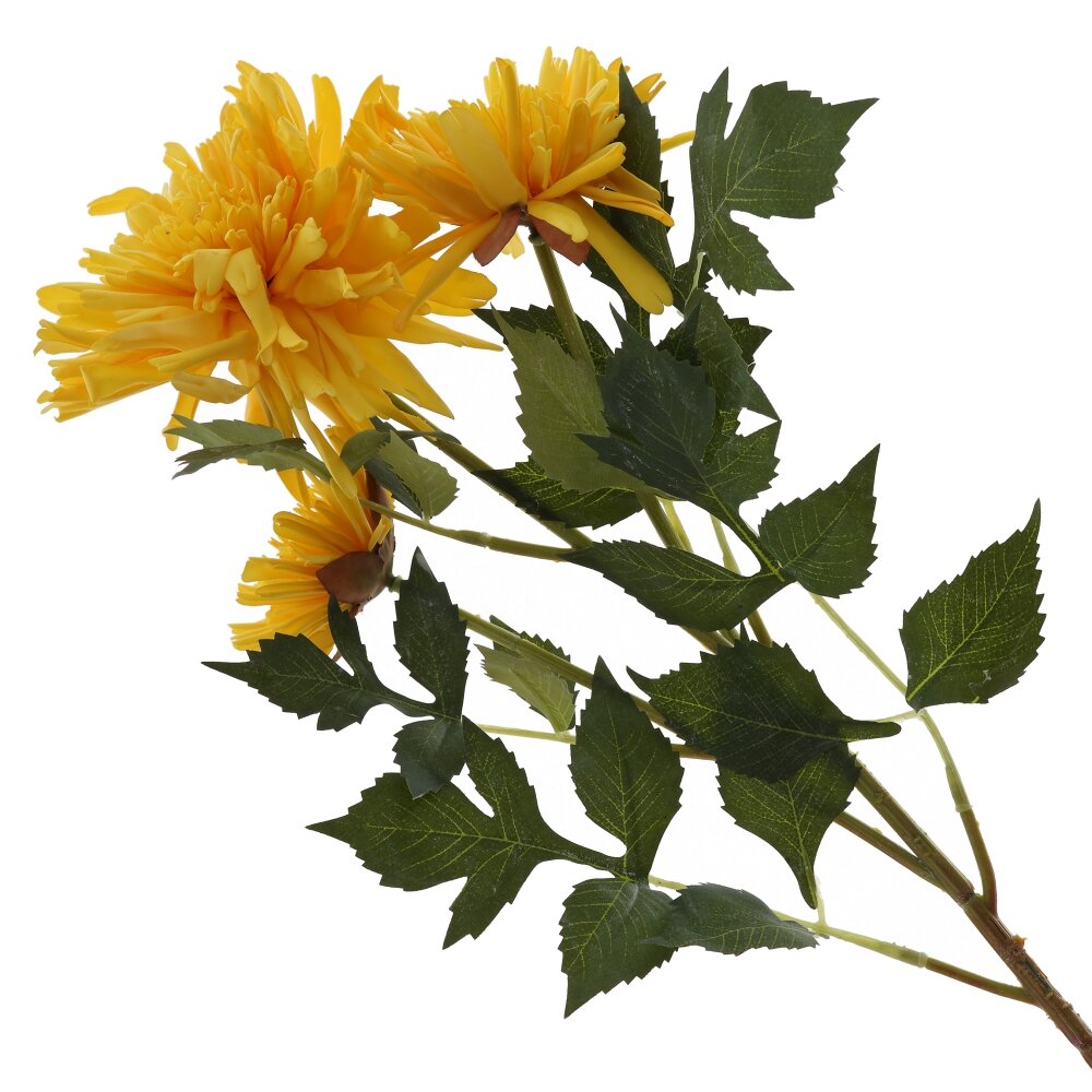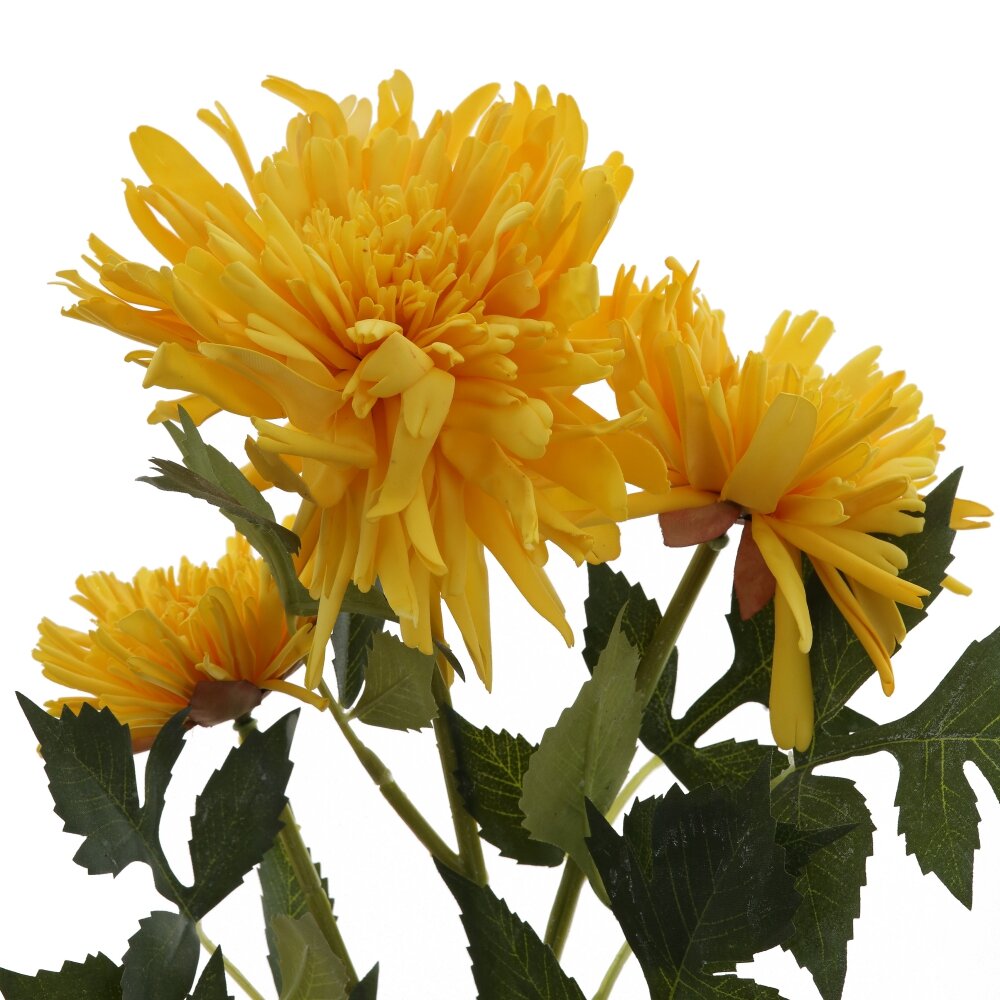 Искусственный цветок «Хризантема» — яркий и долговечный элемент декора, который круглый год будет радовать вас насыщенным жёлтым цветом. Объёмные махровые бутоны с тонкими лепестками и детализированная зелёная листва создают максимально естественный вид, не требующий ухода. Гибкий стебель позволяет легко придавать нужную форму, использовать цветок как в одиночных композициях, так и в букетах, венках, настенных панно или праздничном оформлении. Материал устойчив к выцветанию, не осыпается и подходит для декора дома, офиса, витрин и заведений общественного питания. Отличное решение для тех, кто ценит красоту живых цветов, но не хочет тратить время на полив и уход.