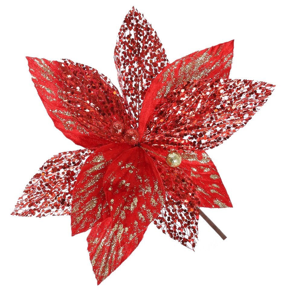 Декоративное украшение в виде цветка пуансеттии — элегантный и яркий элемент декора, идеально подходящий для праздничного оформления интерьера. Пуансеттия традиционно ассоциируется с Рождеством и создаёт атмосферу уюта и тепла. Украшение можно использовать для декорирования ёлок, венков, подарков, столов или стен. Благодаря прочным материалам и удобному креплению, цветок надолго сохранит форму и привлекательный внешний вид.