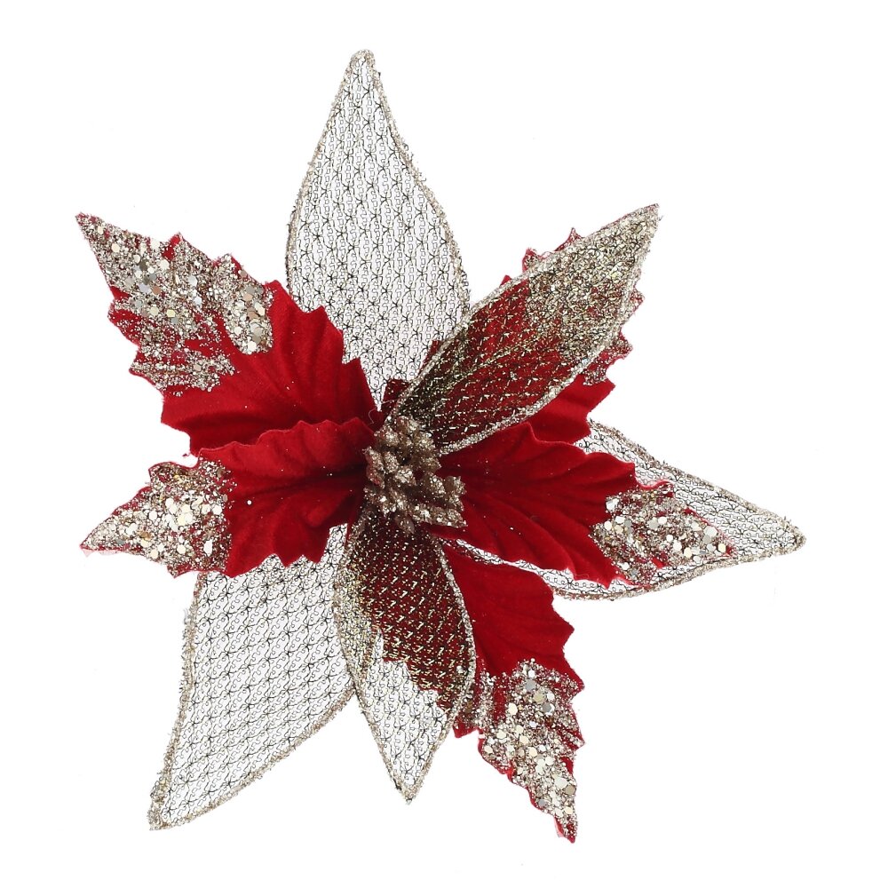 Цветок искусственный "Пуансеттия" (на клипсе), L25 W25 H7,5 см