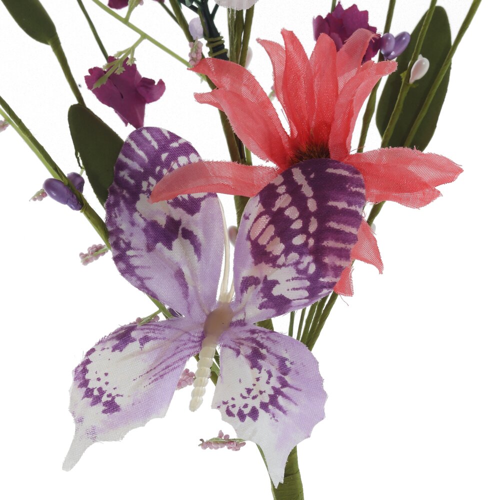 Яркая декоративная ветка искусственных цветов – нежное пасхальное украшение для дома. На одной гибкой зеленой ножке собран целый букет: крупные лиловые и розовые бутоны, изящные белые и фиолетовые цветочки, мелкие соцветия и зелёные листочки разной длины. Сочетание оттенков создаёт ощущение живого весеннего букета, который не вянет и не требует ухода. Ветку удобно использовать для оформления пасхальной композиции в вазе, украшения праздничного стола, корзины с куличами, венков и флористических панно. Лёгкий прочный материал сохраняет форму, не выгорает и подходит для многократного применения из года в год.
