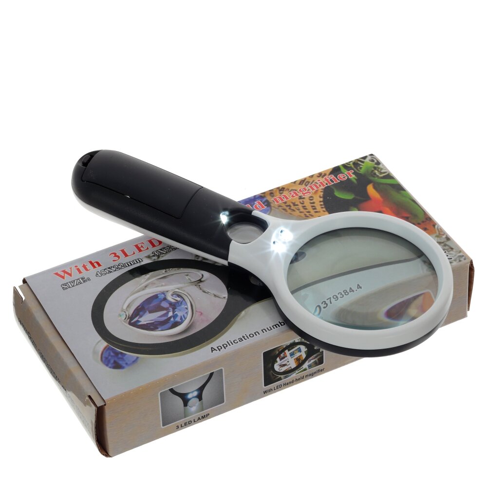 Лупа (D7 см/3-х кратн. увелич., D2 см/ 5-ти кратн. увелич, подсветка, 3xААА н/п), L8 W3 H19,5 см