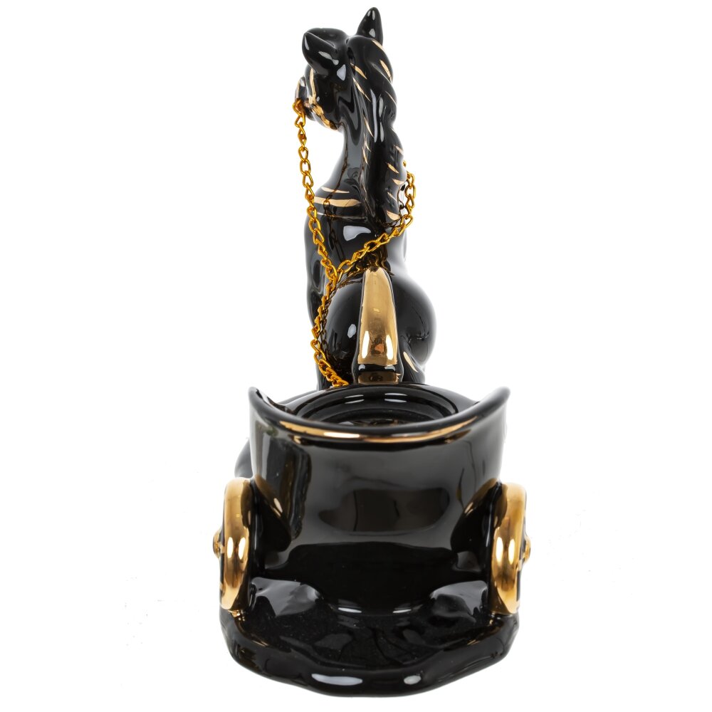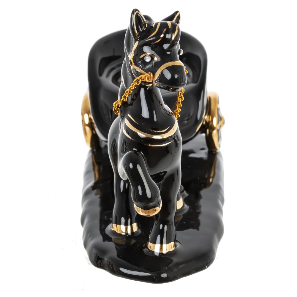 Элегантная декоративная фигурка в виде лошадки с подсвечником— это не только красивый элемент интерьера, но и практичный аксессуар. Изготовлена из высококачественного фарфора черногот цвета и украшена утонченными золотыми элементами, она придаёт пространству изысканность и уют. Такая фигурка станет прекрасным подарком, символизирующим удачу, движение вперёд и гармонию. Идеально впишется в классический и современный интерьер, украсит полку, туалетный столик или рабочее место. Благородное сочетание цветов делает изделие универсальным и по-настоящему праздничным.