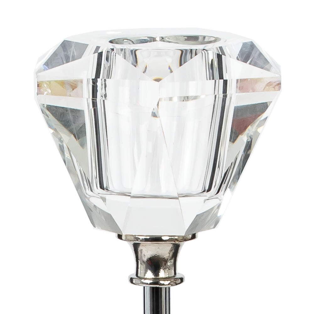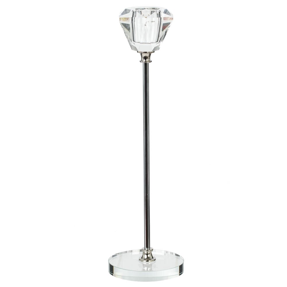 Элегантный подсвечник в современном стиле, выполненный из сочетания металла и прозрачного стекла. Стройная металлическая ножка устойчиво закреплена на круглой стеклянной основе, а сверху располагается изящный стеклянный держатель. При зажигании свечи свет мягко преломляется в гранях стекла, создавая красивую игру бликов и атмосферу уюта. Подсвечник станет эффектным акцентом на праздничном столе, каминной полке или прикроватной тумбе, гармонично дополняя как классический, так и современный интерьер. Идеален в качестве стильного подарка и для создания романтической обстановки дома. Для свечи, диаметром 2 см.
