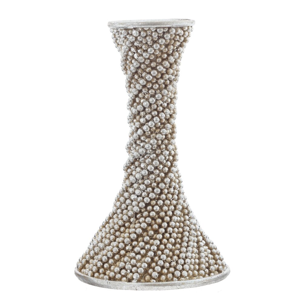 Стильный подсвечник из полимерных материалов с оригинальной фактурой в виде плотного сплетения мелких жемчужных бусин. За счёт плавного изогнутого силуэта он смотрится особенно изящно и привлекает внимание даже без свечи. Мягкий перламутрово?золотистый блеск красиво отражает пламя и создаёт атмосферу уюта и праздничной роскоши. Подсвечник подходит для классических тонких свечей, станет эффектным акцентом на праздничном столе, каминной полке или в гостиной, гармонично дополняя как современный, так и классический интерьер.