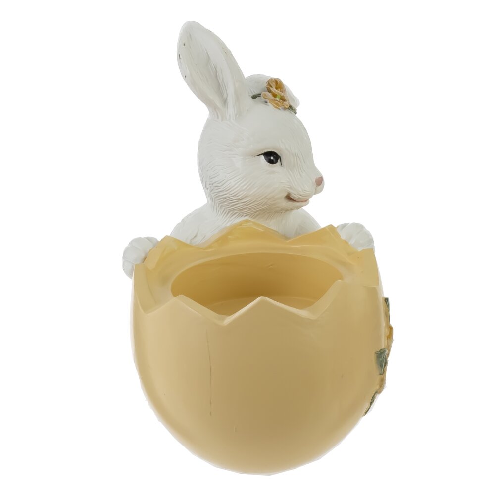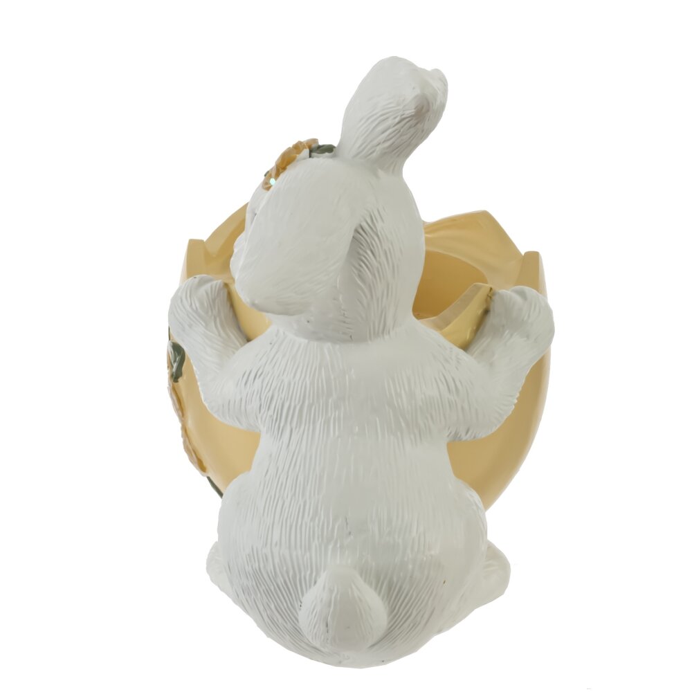 Пасхальный подсвечник «Заяц» станет трогательным акцентом весеннего декора и праздничного стола. Белый зайчонок с милой мордочкой аккуратно обнимает жёлтый подсвечник в виде расколотого пасхального яйца, украшенного рельефным цветком и зелёными листочками. Внутрь удобно поставить чайную свечу или небольшую ароматическую свечку. При горении мягкий свет подчёркивает детали фигурки и создаёт уютную атмосферу. Изделие выполнено из прочных полимерных материалов, устойчивых к выцветанию и легких в уходе. Такой подсвечник подойдёт для сервировки пасхального стола, оформления детской комнаты, станет приятным подарком родным и друзьям.