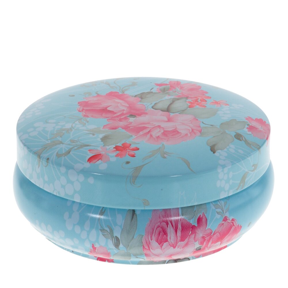 Металлическая круглая шкатулка с цветочным дизайной прекрасно подойдет для хранения различных мелочей и безделушек, а также аксессуаров для шитья, бижутерии и многого другого. Крышка плотно закрывается. Такая шкатулка станет отличным сувениром для ваших друзей и близких.