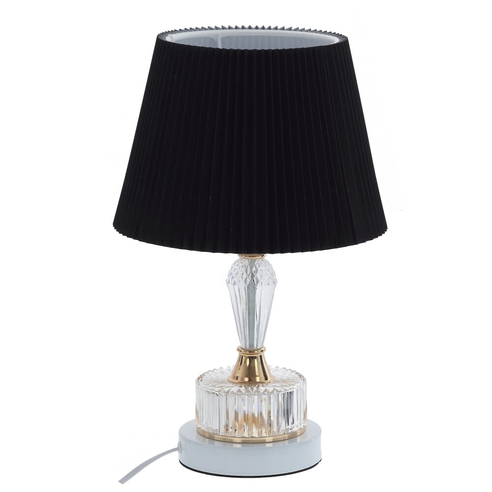 Элегантный настольный светильник станет стильным акцентом в любом интерьере. Лаконичный черный абажур из текстильных материалов мягко рассеивает свет, создавая уютную атмосферу в спальне, гостиной или кабинете. Прозрачная фактурная подставка с декоративными золотистыми элементами выполнена из металла и полимерных материалов, что обеспечивает прочность и долговечность изделия. Оптимальная длина шнура 1,04 м позволяет удобно разместить светильник на тумбе, комоде или рабочем столе. Подходит для использования с энергосберегающими и светодиодными лампами с цоколем Е27, что помогает настроить комфортный уровень освещенности и подчеркнуть изысканный характер помещения.