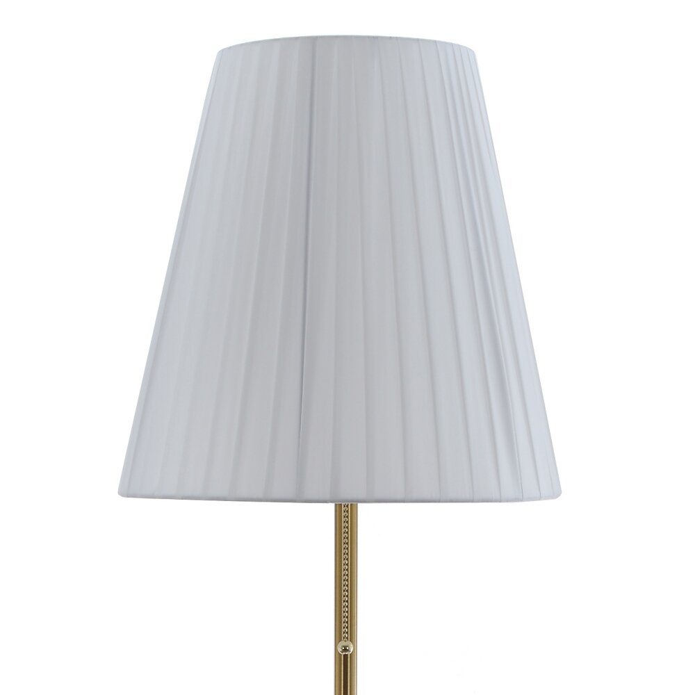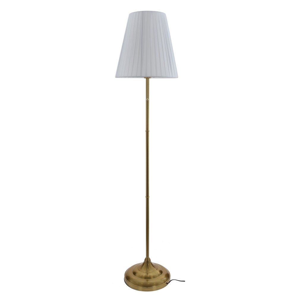 Напольный светильник в классическом стиле станет элегантным акцентом в гостиной, спальне или кабинете. Металлическая стойка и массивное круглое основание с покрытием под латунь обеспечивают устойчивость и придают модели благородный, слегка винтажный вид. Белый тканевый плафон конусной формы с мягкими складками равномерно рассеивает свет и создает уютную атмосферу для отдыха и чтения. Светильник оснащен стандартным патроном Е27, что позволяет использовать широкий выбор ламп – светодиодных, энергосберегающих или классических. Длина сетевого шнура 1,8 м обеспечивает удобное подключение к розетке без удлинителей, а простое включение делает эксплуатацию максимально комфортной.