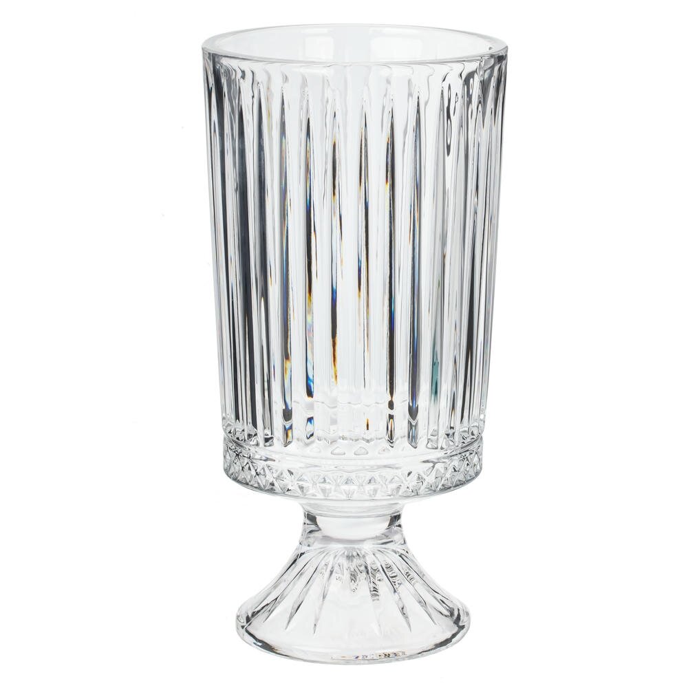 Элегантная высокая ваза из прозрачного стекла объемом 1050 мл. Корпус украшен вертикальными гранеными ребрами, которые красиво преломляют свет и подчеркивают чистоту материала. Широкий цилиндрический стакан плавно переходит в декоративное основание на устойчивой ножке с лучевым рифлением. Ваза хорошо подходит для средних букетов, веток, сухоцветов или композиции с декоративными шарами. Классический дизайн легко впишется в современный, скандинавский или неоклассический интерьер, станет акцентом на столе, каминной полке или в прихожей. Широкое горлышко упрощает расстановку цветов, а утолщенные стенки обеспечивают надежность. Отличный вариант для подарка и повседневного использования. Диаметр горловины: 10.5 см.