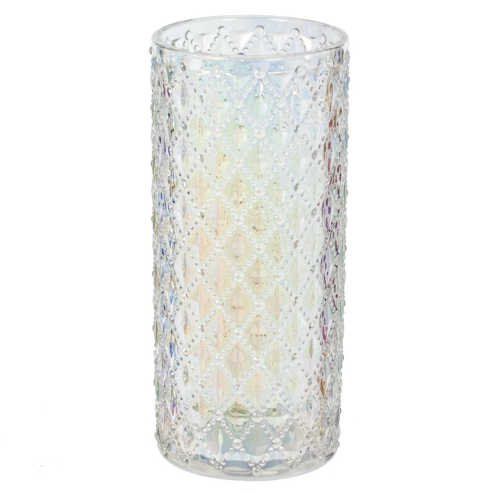 Элегантная стеклянная ваза объемом 1200 мл выполнена в вытянутой цилиндрической форме и украшена рельефным узором в виде ромбов и мелких выпуклых «жемчужин». Полупрозрачное стекло красиво преломляет свет и подчеркивает изящество цветочных композиций. Ваза идеально подойдет для букетов средней высоты, сухоцветов или декоративных веток. Стильный дизайн легко впишется в современный, классический или винтажный интерьер, украшая гостиную, спальню, кухню или офис. Прочное стекло просто в уходе и сохраняет первоначальный вид при регулярном использовании. Диаметр горловины: 9 см.