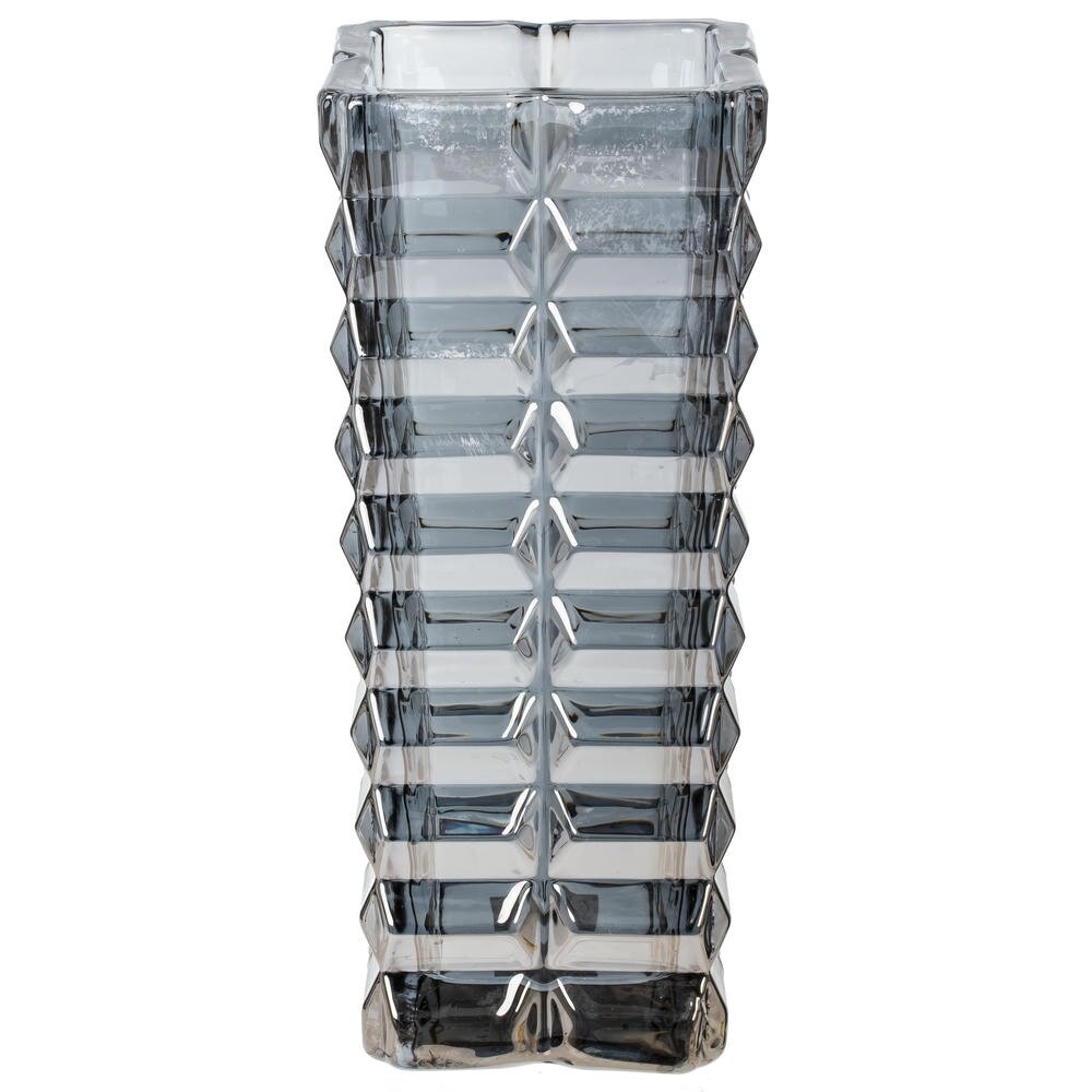 Элегантная ваза из стекла объёмом 1900 мл с выразительной геометрической фактурой. Прямоугольный, вытянутый корпус и квадратное горлышко подчеркивают современный характер предмета, а рельефные грани создают эффект игры света и объёма. Приятный дымчато?серый оттенок делает вазу универсальной: она гармонично впишется в интерьер в стиле минимализм, лофт или сканди. Толстое стекло и утяжелённое дно придают устойчивость, поэтому сосуд подходит для высоких букетов, веток или сухоцветов, а также может выступать самостоятельным акцентом на столе, консоли или подоконнике. Рекомендуется бережная ручная мойка для сохранения блеска и рельефа. Отличный вариант для дома и в качестве подарка. Диаметр горловины: 9.5 см.