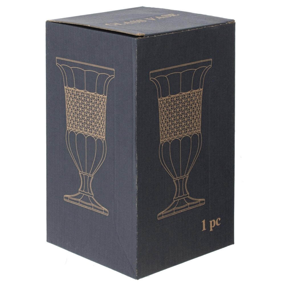 Элегантная ваза из прочного стекла объемом 750 мл. Изделие на высокой ножке с фигурным, лепестковым основанием и расширяющимся горлом, что удобно для расстановки стеблей. Центральная часть украшена рельефным геометрическим узором «алмазная грань», нижняя — вытянутыми фасетами. При дневном и искусственном освещении ваза красиво играет бликами, подчеркивая букет. Нейтральный дымчатый оттенок легко сочетается с классическим и современным интерьером. Устойчива, компактна, подходит для живых цветов, сухоцветов или как самостоятельный декоративный акцент. Рекомендуется ручная мойка без абразивов. Диаметр горловины: 8 см.