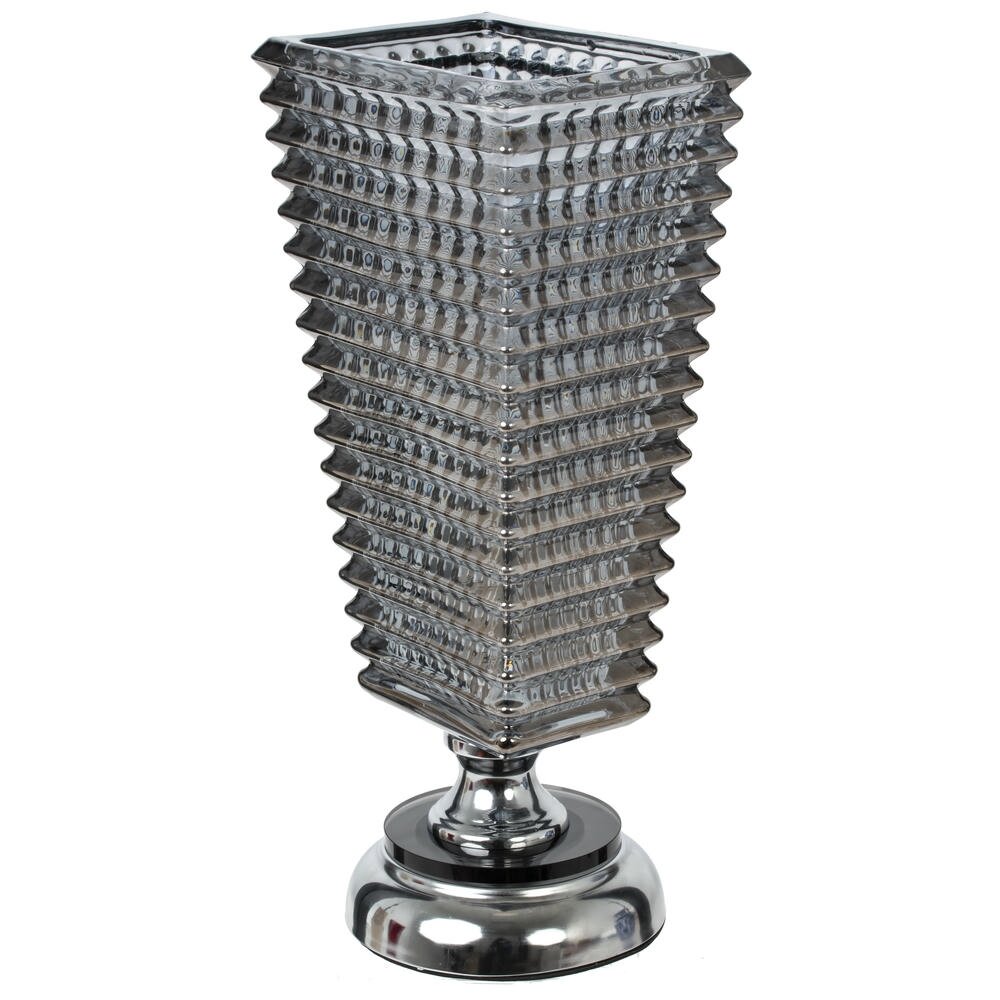 Элегантная ваза для искусственных цветов объёмом 1940 мл станет стильным акцентом в любом интерьере. Верхняя часть выполнена из плотного прозрачного стекла с оригинальной ребристой фактурой и трапециевидной формой, плавно расширяющейся кверху. Основание изготовлено из прочного металла с глянцевым хромированным покрытием, обеспечивающим устойчивость и эффектный блеск. Две части вазы соединяются надёжным креплением, что облегчает сборку, хранение и уход за изделием. Такой аксессуар гармонично впишется в современный, классический или лофт-дизайн, подчеркнёт красоту композиций из искусственных цветов и декора, подойдёт для гостиной, спальни, офиса или приёмной. Размер горловины: 14*10 см.