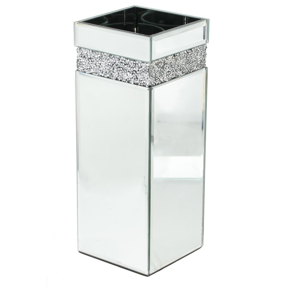 Элегантная декоративная ваза из стекла с зеркальной поверхностью – стильный акцент для современного интерьера. Прямоугольная форма и лаконичный серый оттенок создают ощущение строгости и порядка, а блестящий пояс из мелких стеклянных кристаллов придаёт изделию нарядный, почти ювелирный вид. Зеркальные грани красиво отражают свет и окружающие предметы, визуально расширяя пространство и добавляя ему глубины. Ваза подойдёт для живых и сухих цветов, декоративных композиций, веток или как самостоятельный элемент декора на комоде, консоли или журнальном столике. Идеальное решение для интерьеров в стиле модерн, гламур, лофт и минимализм, а также удачный вариант подарка на новоселье или праздник. Диаметр горловины: 7.5 см.
