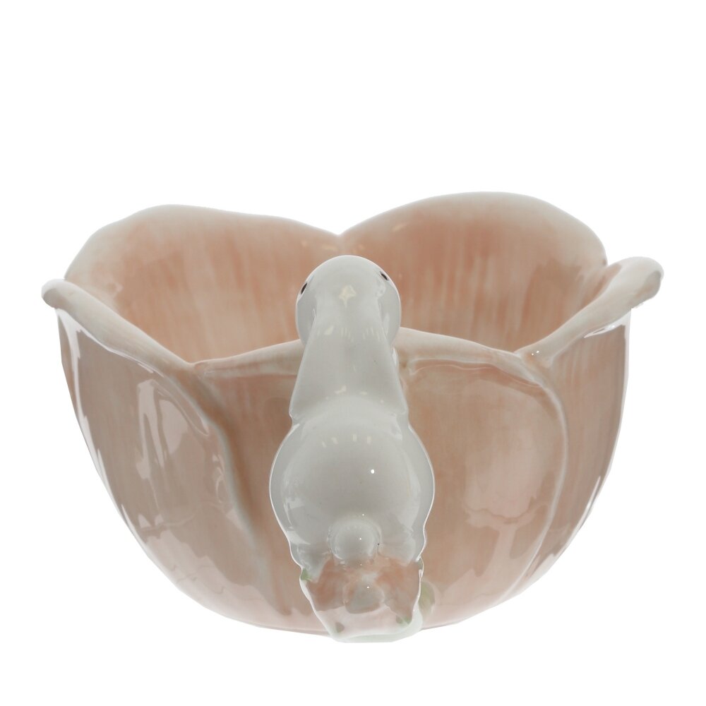 Керамическая чашка с блюдцем «Сказочная кувшинка» – изящный аксессуар для весеннего чаепития и праздничного декора стола. Подарочный набор кружки с блюдцем имеет размер: длина 16 см, ширина 13 см, высота 7 см. Кружка: длина с ручкой 14,5 см, ширина (диаметр) 9 см, высота 5 см. Блюдце: диаметр 12,5 см, высота 1 см. Чашка объёмом 100 мл выполнена в форме раскрытого цветка нежно-персикового оттенка, блюдце имитирует лепестки. Особое очарование предмету придаёт оригинальная ручка нежно-зелёного цвета с фигуркой белого пасхального зайчика. Гладкая глазурованная поверхность легко моется и сохраняет яркость красок. Набор подойдёт для подачи эспрессо, ликёров, десертных напитков, станет милым пасхальным подарком и стильным украшением интерьера. Пасхальная чайная пара подойдёт для сервировки семейного завтрака, украшения интерьера кухни, а также станет милым и практичным подарком к Пасхе или масленице для родных и друзей. Качественная керамика легко моется и подходит для повседневного использования. Эта очаровательная чайная пара станет отличным сувениром на день рождения, новый год, 8 марта и любой другой праздник.