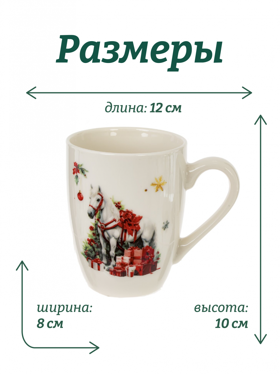 Праздничная новогодняя кружка — стильный и эффектный элемент сервировки, созданный для особых моментов. Декорированная яркими новогодними элементами, такими как нарядная ёлочка и символ 2026 года — лошадка, она наполняет атмосферу стола теплом, уютом и праздничным настроением. Изготовленная из качественного материала, кружка сочетает в себе практичность и декоративную ценность. Упакована в красивую подарочную коробку, что делает её готовым решением для презента родным, друзьям или коллегам. Отличный выбор для тех, кто ценит стиль и символику в каждом элементе праздника.