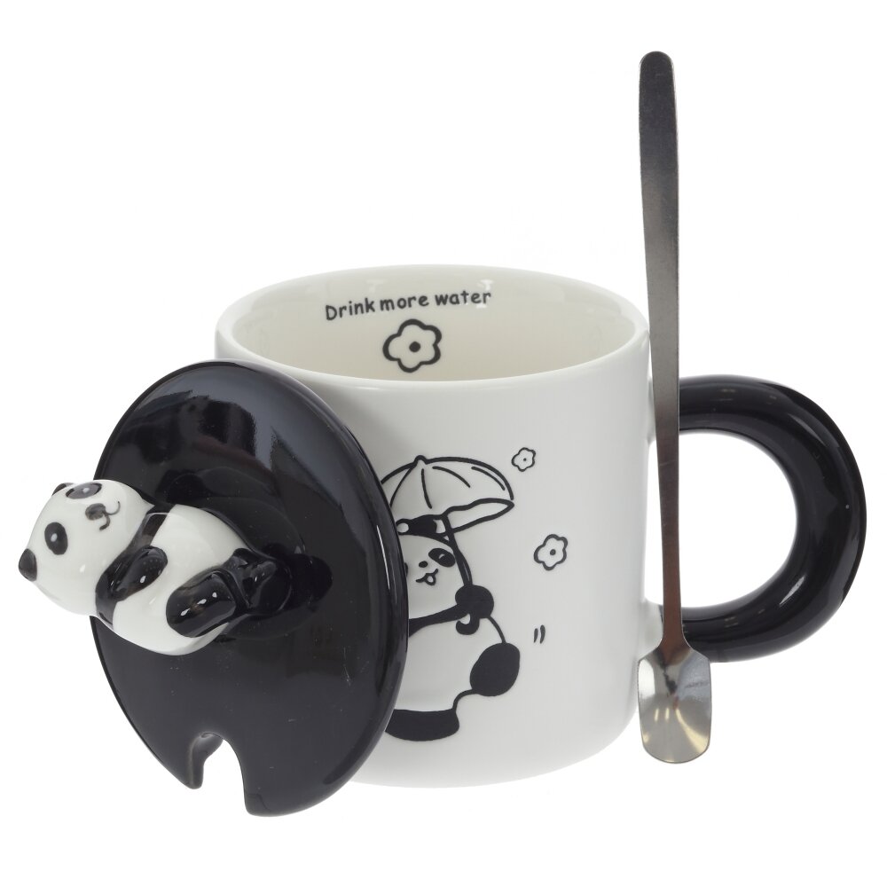 Стильная кружка объёмом 350 мл с крышкой и ложкой — удобный и яркий аксессуар для дома и офиса. Корпус и крышка выполнены из прочного фарфора с глянцевым чёрным покрытием и милым принтом с забавным персонажем. Крышка помогает дольше сохранять тепло напитка и защищает его от пыли, а декоративная фигурка делает кружку по?настоящему уникальной. В комплект входит ложка, которую удобно хранить прямо в кружке. Отличный подарок для детей и взрослых, ценящих оригинальные и практичные вещи.