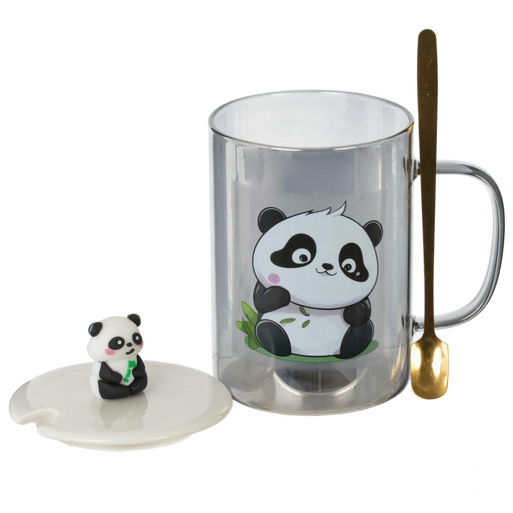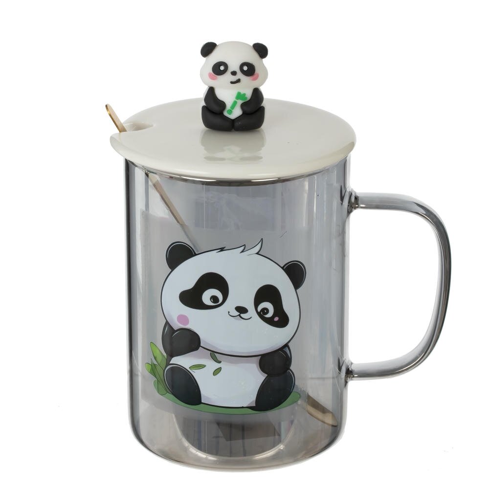 Очаровательная кружка с крышкой и ложкой объёмом 374 мл станет вашим любимым аксессуаром для чая, кофе, какао или травяных настоев. Прозрачный корпус из прочного стекла украшен милым рисунком панды, создающим уютное и игривое настроение. Плотная фарфоровая крышка помогает дольше сохранять напиток горячим и защищает его от пыли, а фигурка панды сверху служит удобным держателем. Металлическая ложка входит в комплект и идеально подходит для размешивания сахара, мёда или сиропа. Удобная ручка обеспечивает надёжный захват, кружку комфортно держать даже с горячим напитком. Практичный и стильный вариант для дома и офиса, а также отличный подарок для детей и взрослых, ценящих оригинальную посуду.