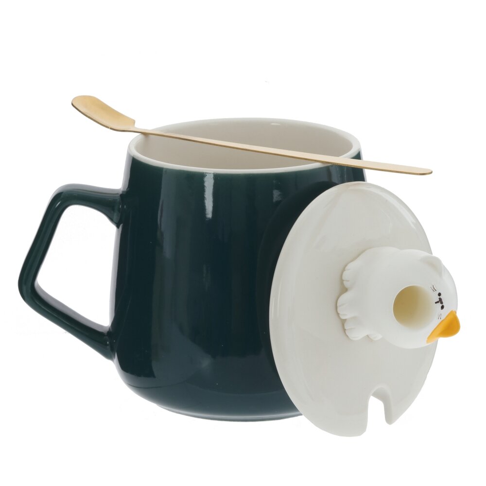 Кружка с крышкой и ложкой, 390 мл, L12,5 W9,5 H13 см