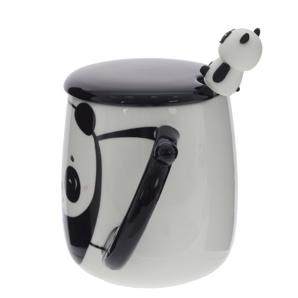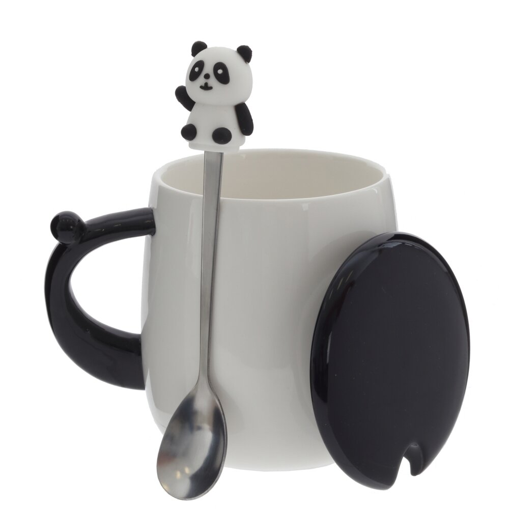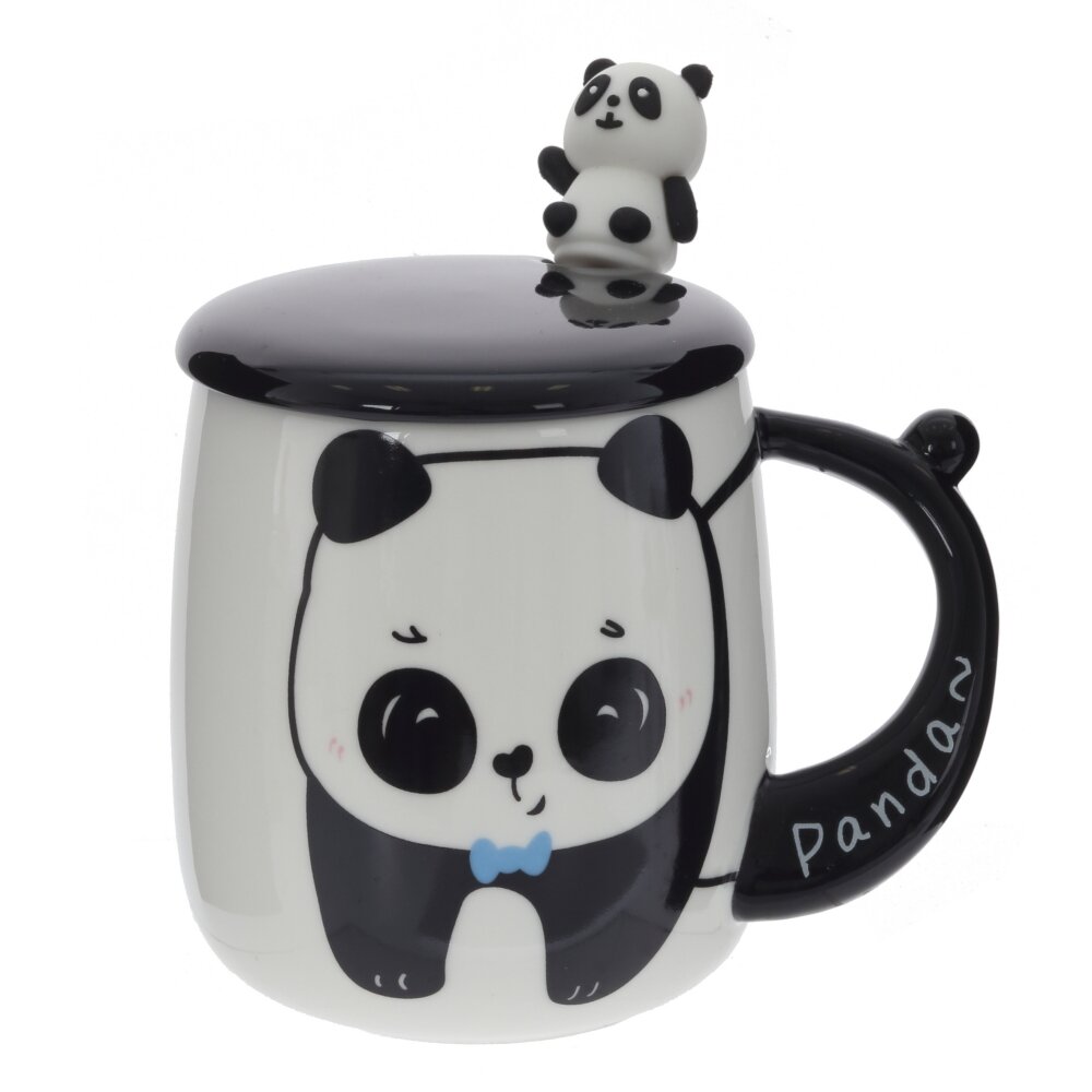 Очаровательная кружка с крышкой и ложкой станет любимым аксессуаром для чая, кофе, какао и других горячих напитков. Объём 400 мл позволяет наслаждаться большим порцией напитка, а крышка помогает дольше сохранять тепло и защищает от пыли. Кружка выполнена из прочного фарфора с гладкой глянцевой поверхностью, дополнена удобной ручкой. Сверху крышку украшает объёмная фигурка панды из полимерного материала, повторяющая забавный рисунок на стенках кружки. Металлическая ложка входит в комплект и удобно размещается под крышкой. Стильный чёрно?белый дизайн с милой пандой подойдёт как детям, так и взрослым и станет отличным подарком для родных, друзей и коллег.