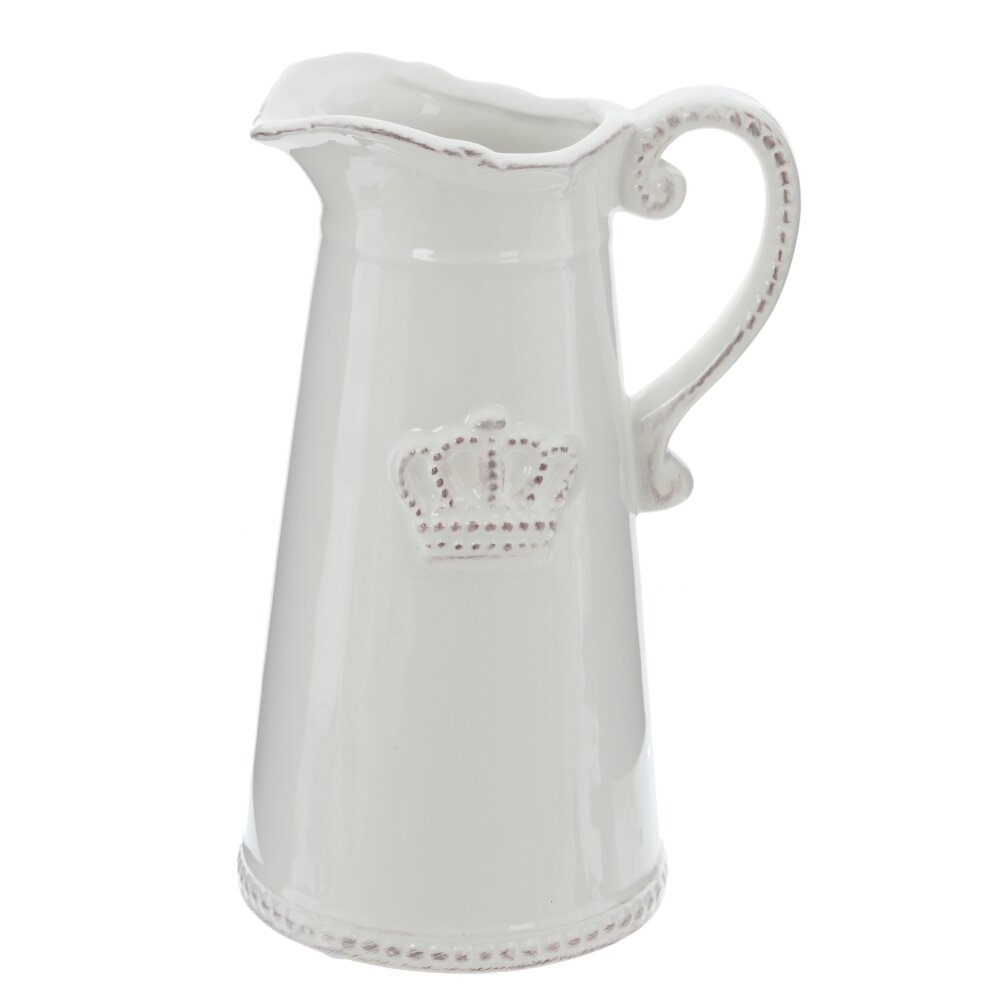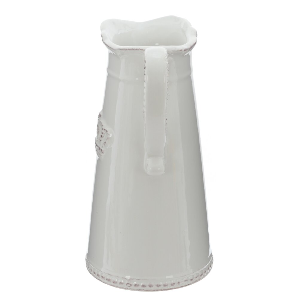 Элегантный кувшин из фарфора объёмом 1110 мл, выполненный в молочно?белом цвете с глянцевой глазурью. Корпус плавно расширяется к основанию, что обеспечивает устойчивость на столе. В центре рельефный рисунок с лёгким эффектом патины, придающий изделию винтажный шарм. Волнистый край и широкий носик облегчают аккуратное наливание, а фигурная удобная ручка уверенно лежит в руке. Кувшин подойдёт для подачи воды, молока, компота или лимонада, а при желании может служить декоративной вазой для небольшого букета. Гармонично сочетается с классической, прованской и рустикальной сервировкой, добавляя интерьеру лёгкость и утончённость.