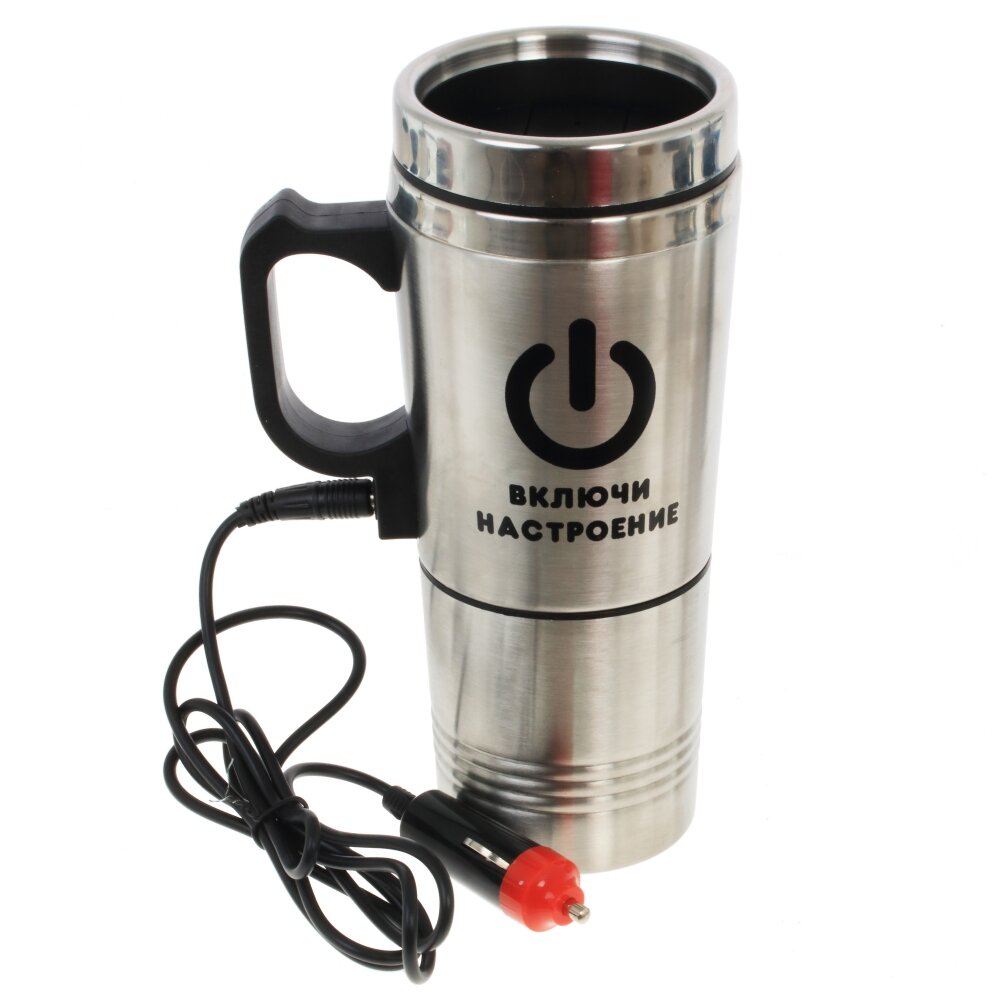 Термокружка с функцией подогрева от прикуривателя автомобиля прекрасное решение для тех, кто любит пить теплые напитки в дороге. Кружка оснащена съемным стаканчиком, размером 7,5*7,5*7,5 см и объемом 250 мл, пластиковой ручкой, герметичной крышкой и имеет шнур питания длиной 130 см.