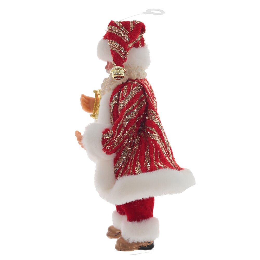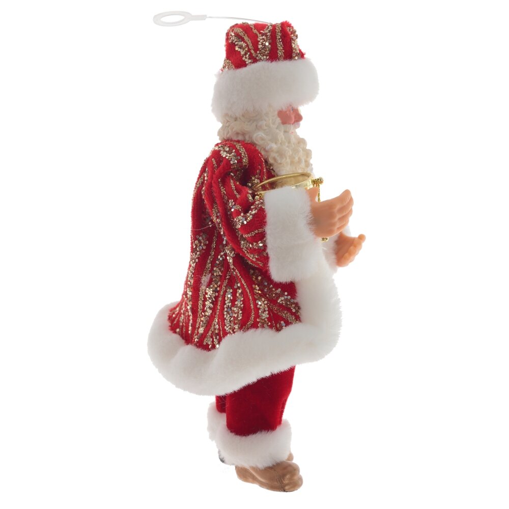 Дед Мороз, 18 см в высоту – это миниатюрная кукла, которая станет отличным украшением для новогодней елки или другого места в вашем доме. Его голова, руки и ботинки выполнены из полимерных материалов и отличаются высокой детализацией. Красный костюм расшит яркими пайетками, что придает ему праздничный вид. Эта кукла не только добавит уют в атмосферу праздника, но и порадует своим очарованием маленьких и больших любителей зимних чудес.