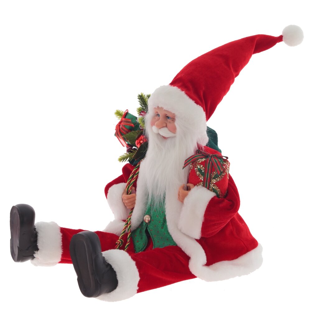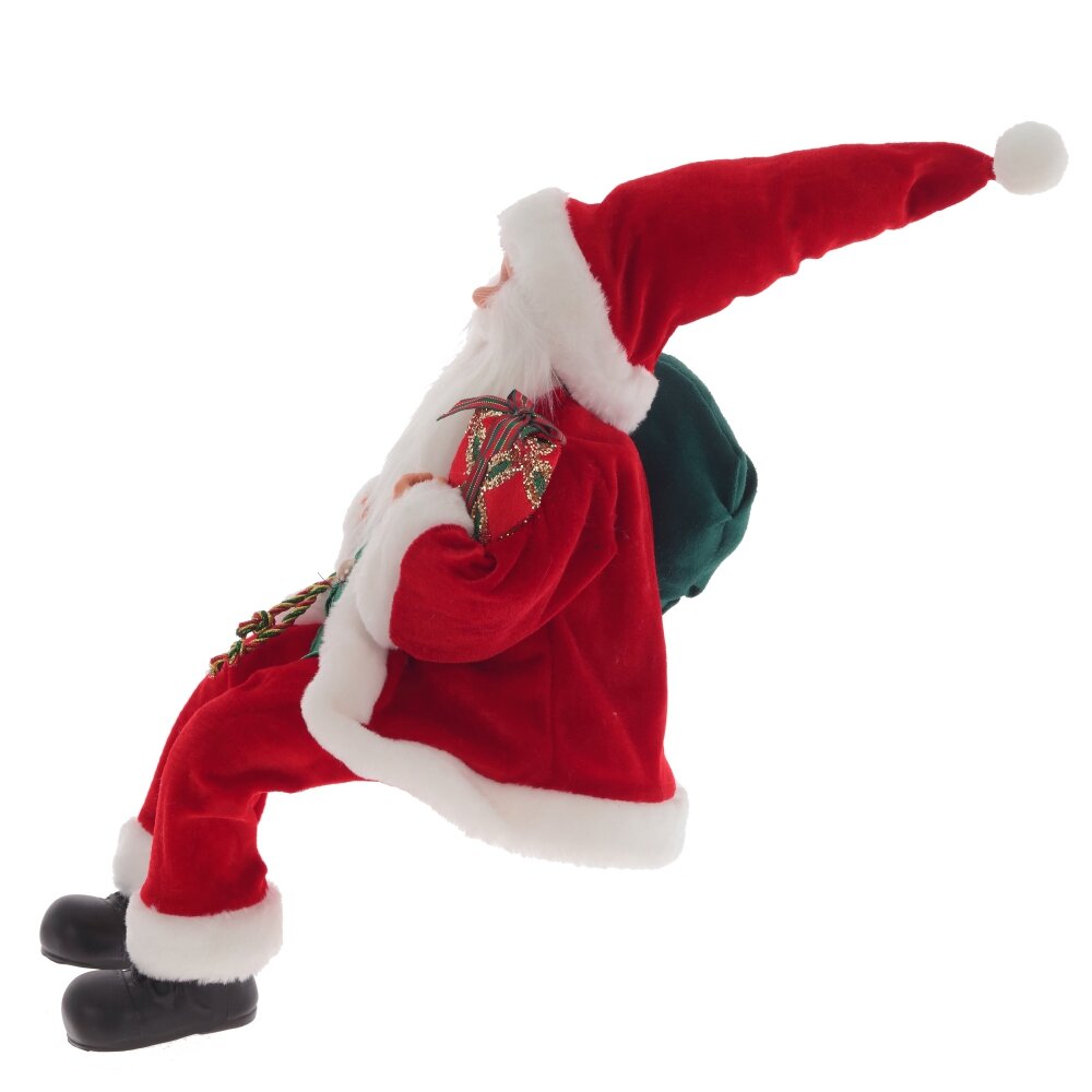 Этот Дед Мороз станет ярким акцентом в вашем праздничном интерьере. Его реалистичное лицо, руки и сапоги выполнены из полимерных материалов, а свисающие ноги придают ему динамичность. Облачённый в традиционный яркий красный бархатный костюм, он радует всех вокруг. Мешок с подарками на плече символизирует радость и приближение праздника, наполняя дом атмосферой волшебства и улыбок. Идеален для размещения под елочкой!