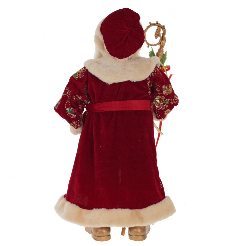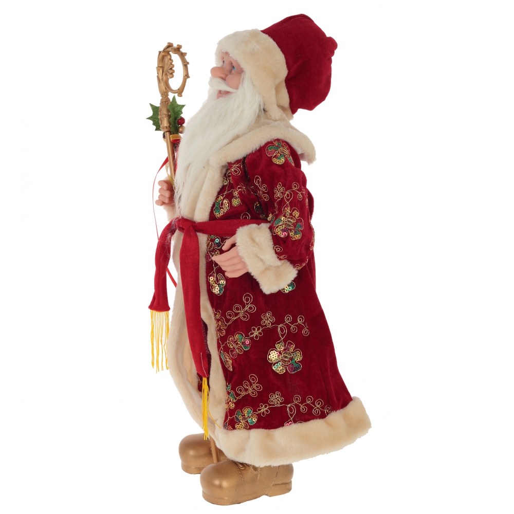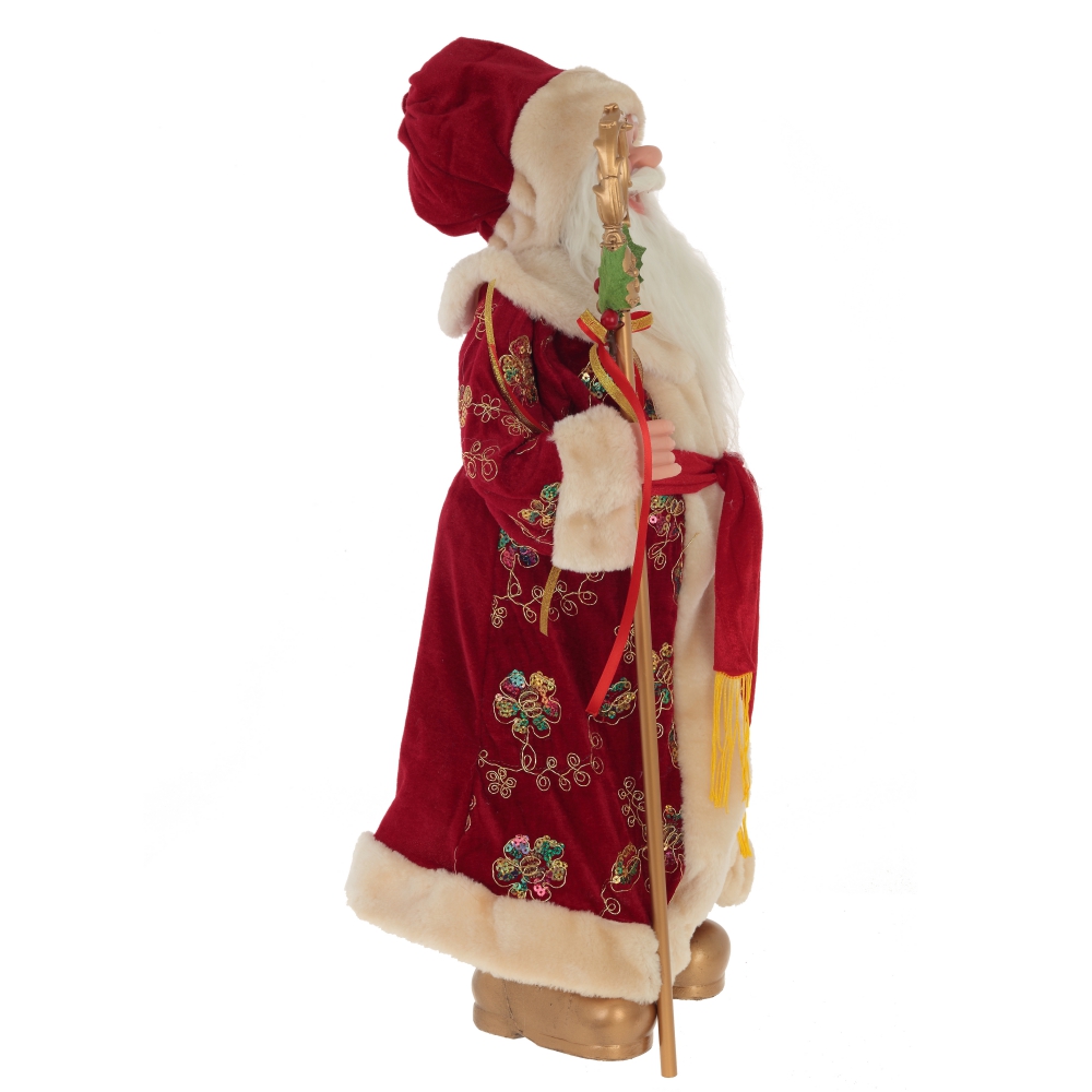 Дед Мороз в бордовом кафтане с золотым узором, с посохом в руке – желанный гость любого новогоднего праздника. Он обязательно принесет радость в Ваш дом!